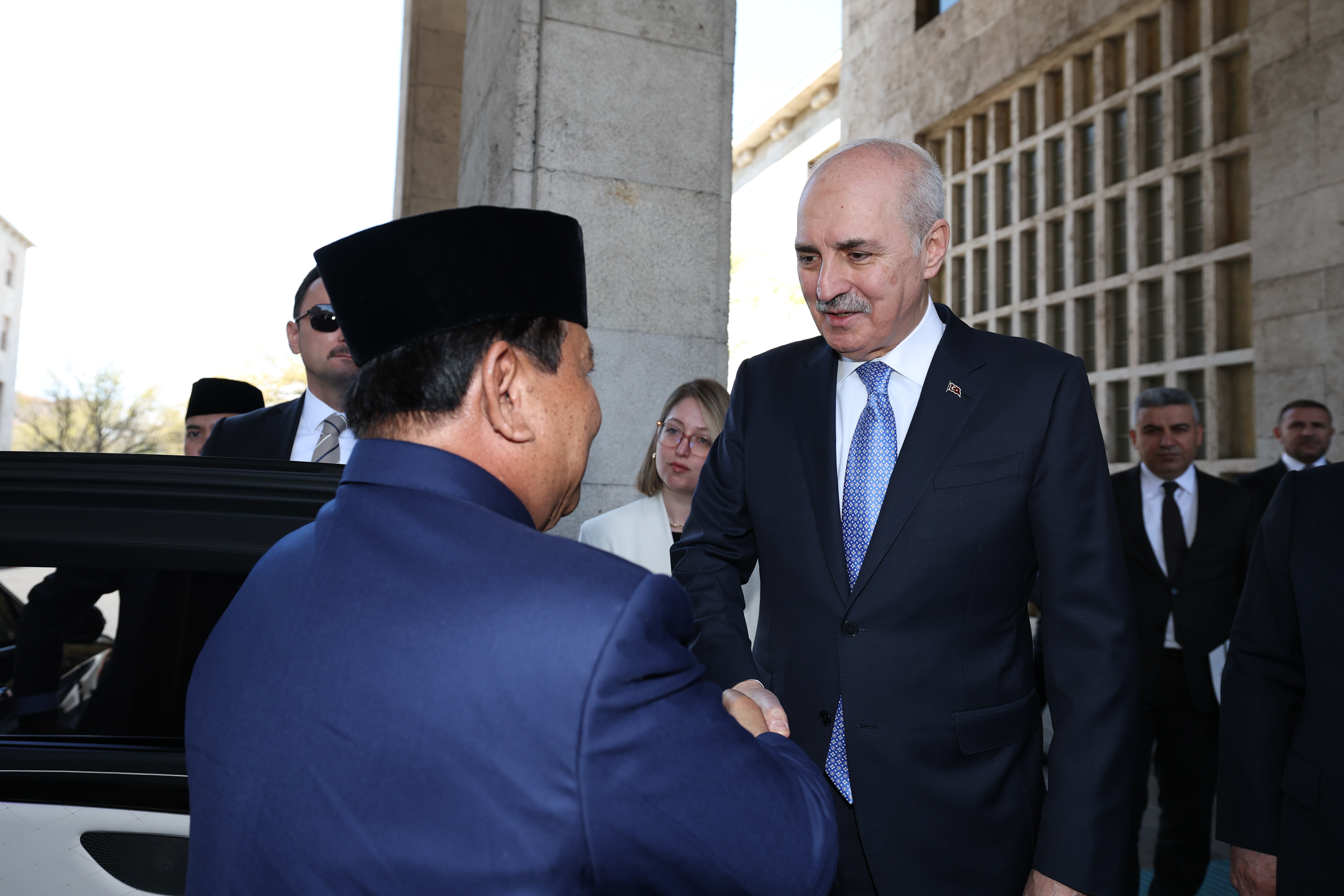 TBMM’ye, Türkiye ve Endonezya bayraklarını taşıyan motosikletli koruma ekiplerinin eşliğinde giriş yapan Subianto, daha sonra TBMM Başkanı Kurtulmuş tarafından karşılandı.