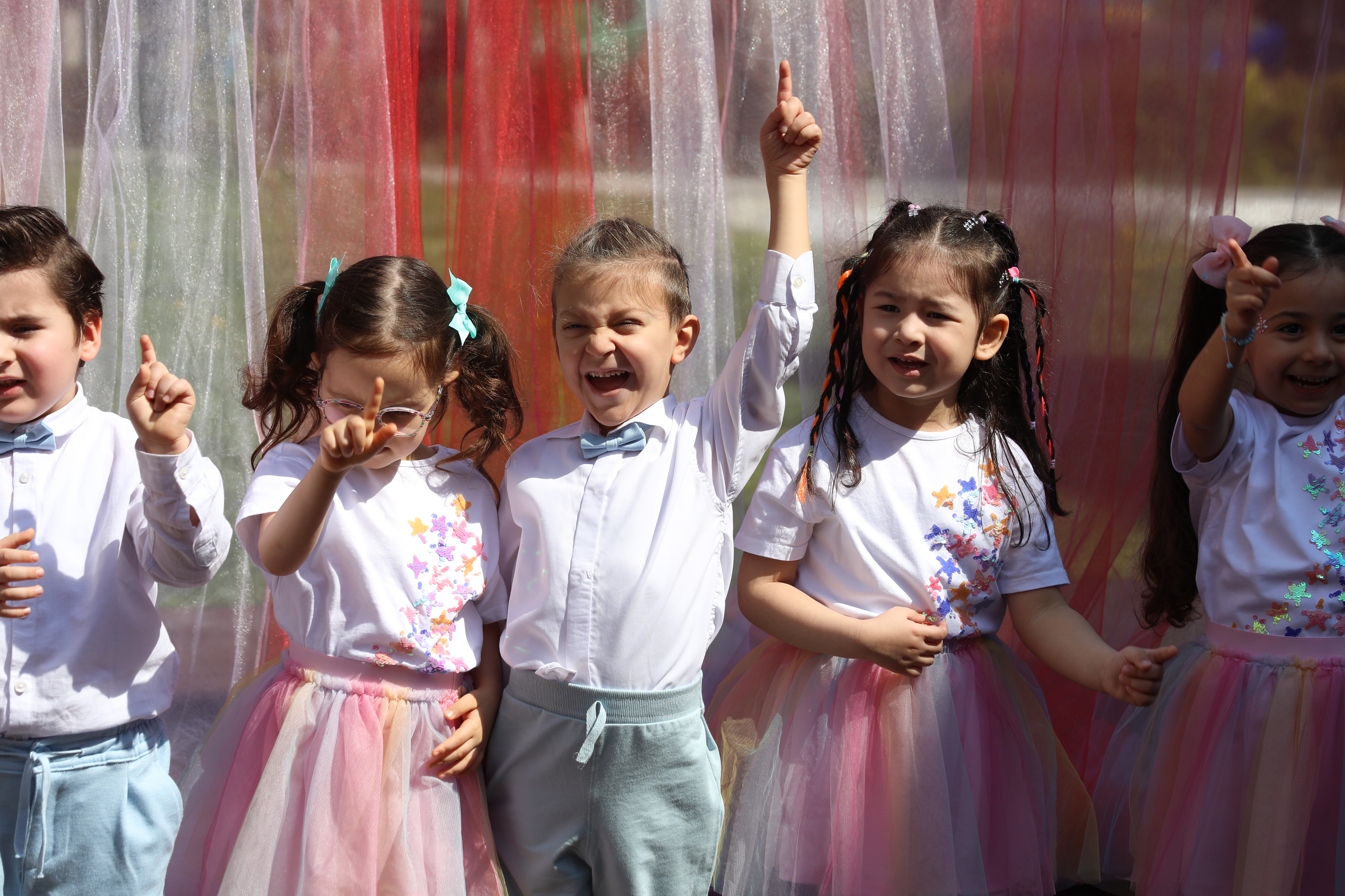 Daha sonra minikler; öğretmenleri ve sınıf ablaları ile birlikte hazırladıkları gösterileri, büyük bir heyecan ile sergilediler.
