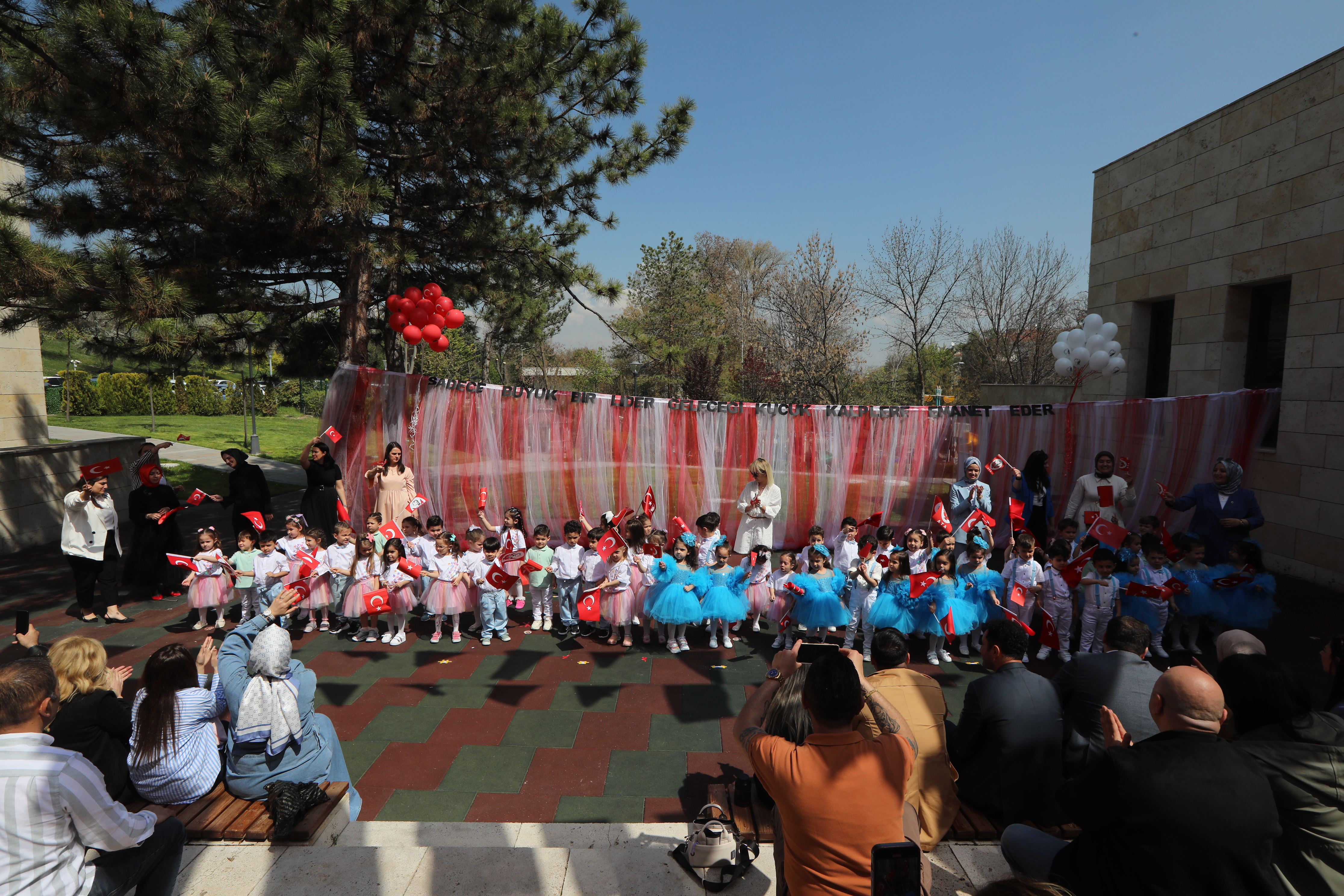 TBMM Kreş, Gündüz Bakımevi ve Anaokulu bahçesinde gerçekleşen etkinlik saygı duruşu ve ardından okunan İstiklal Marşı ile başladı.