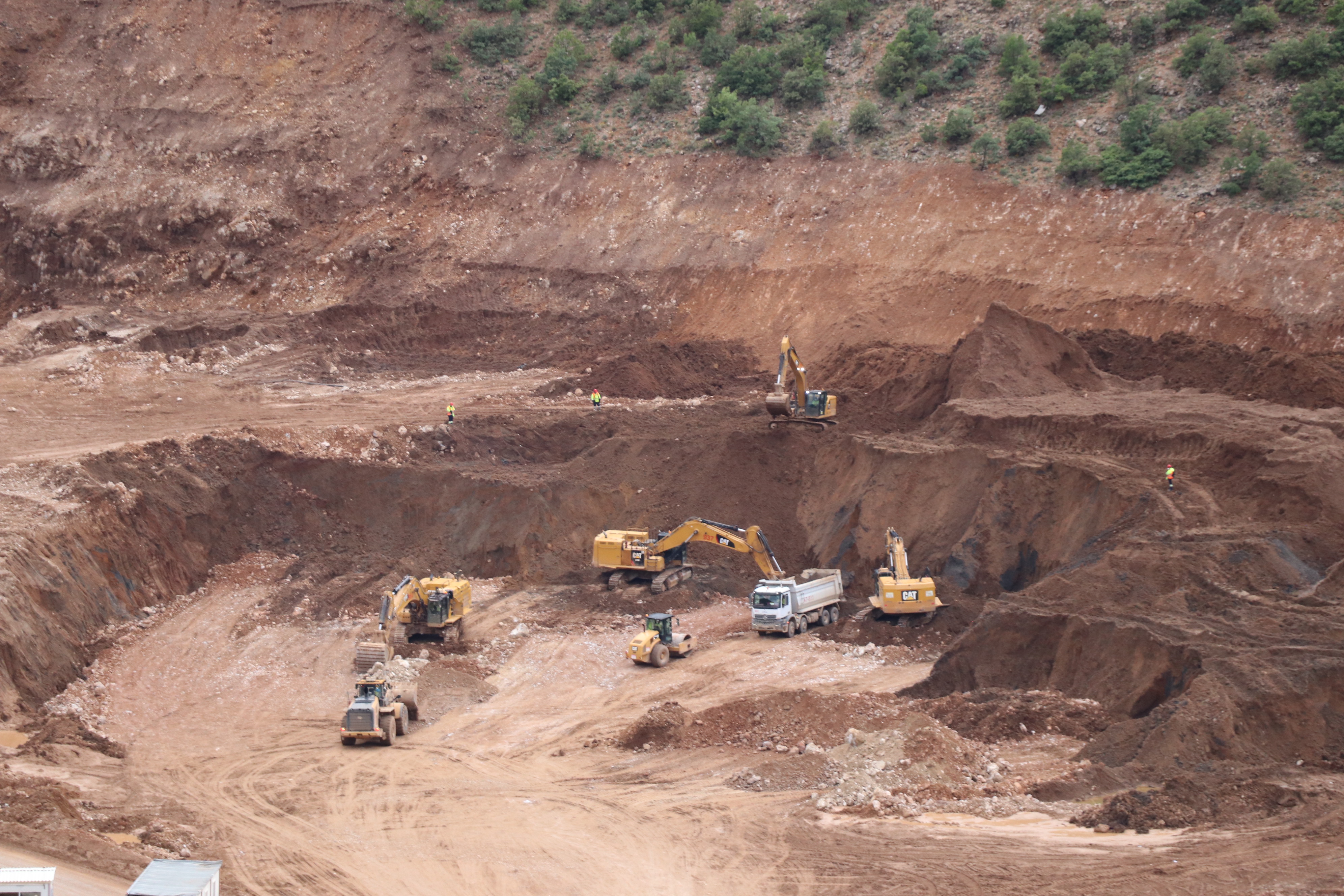 Toprağın kaydığı bölge ve maden ocağının çeşitli alanlarında incelemeler yapan Başkan Uslu ve komisyon üyeleri, 3 bölgeye giderek ilgili alanlardaki yetkilileri dinledi.