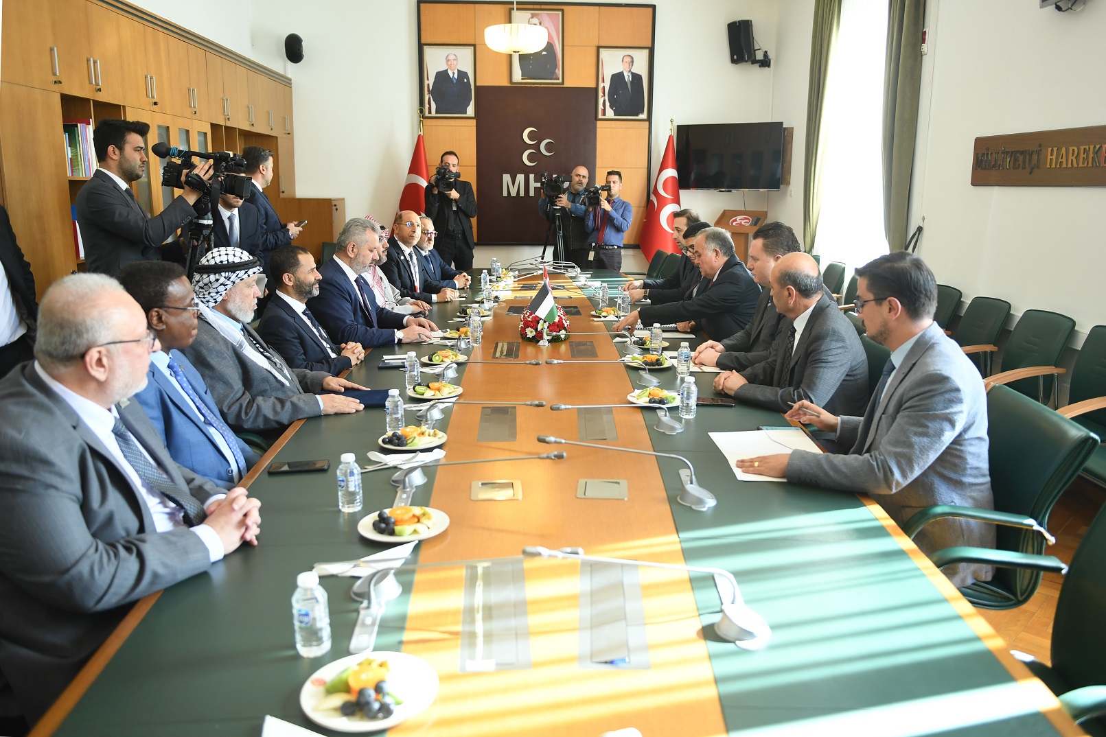 Heyet ilk olarak MHP Grubu'nu ziyaret etti. Görüşmenin ardından açıklama yapan MHP Grup Başkanvekili Erkan Akçay, İsrail'in 7 Ekim'de başlattığı ve halen devam eden insanlık dışı saldırılarının üzüntüsü içerisinde olduklarını söyledi.