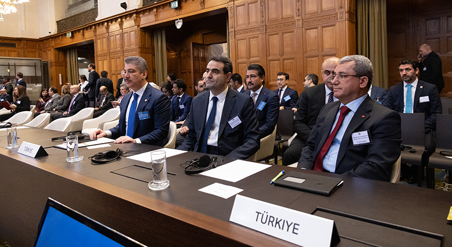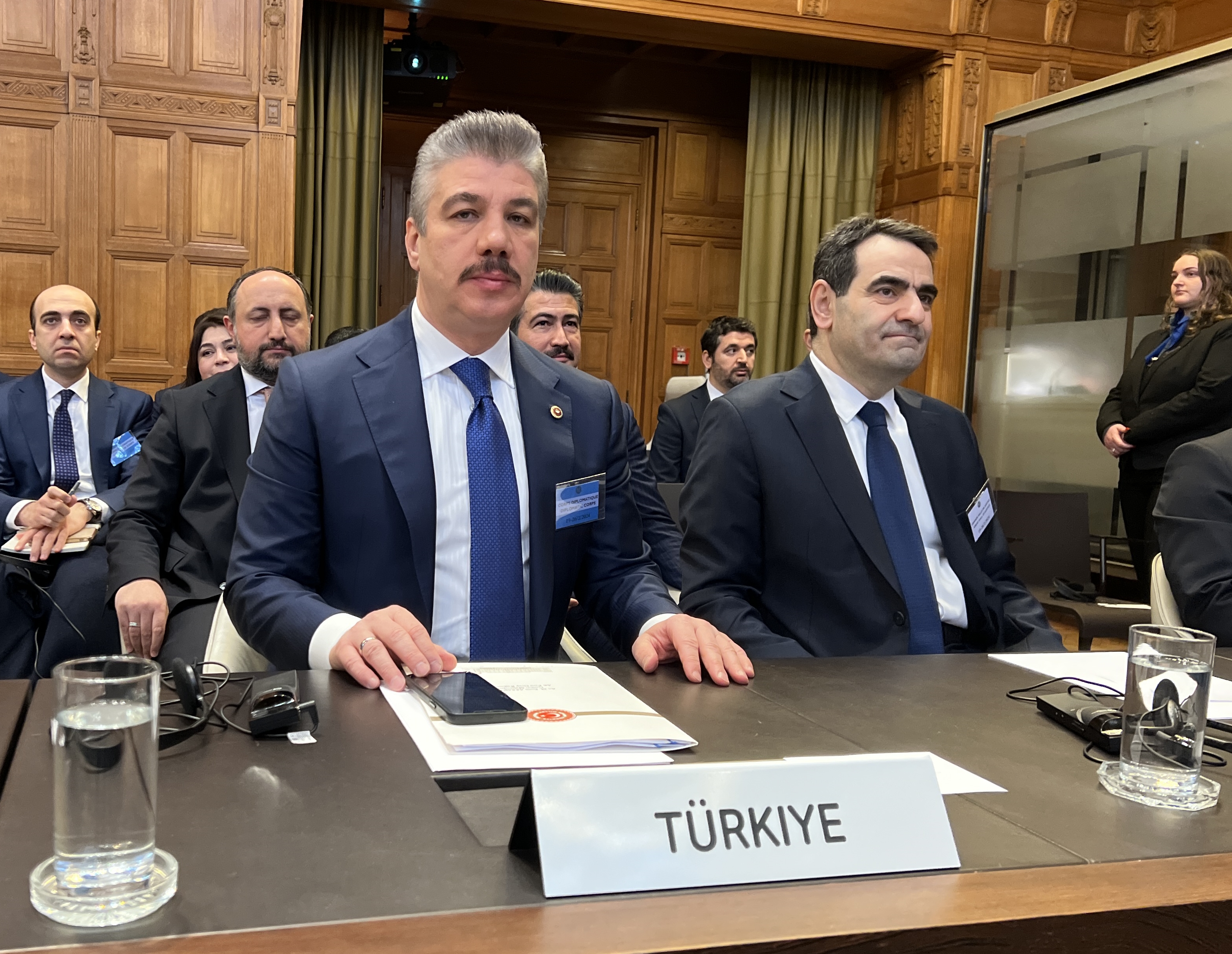 Dışişleri Bakan Yardımcısı Büyükelçi Ahmet Yıldız, Hollanda'nın idari başkenti Lahey'deki Barış Sarayı'nda faaliyetlerini yürüten Uluslararası Adalet Divanında (UAD) İsrail'in işgal ettiği Filistin topraklarındaki uygulamalarının hukuki sonuçlarının ele alındığı duruşmalarda Türkiye adına sunum yaptı.