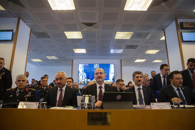 Soylu, "Kurumlarımız arasında öyle bir işbirliği var ki kimin ne kadar ihtiyacı varsa, alımı ne yaparsak yapalım, istersek İnsansız Hava Aracı alalım, istersek helikopter, zırhlı araç alalım ne yaparsak yapalım, polisin, jandarmanın ve Sahil Güvenliğin hatta birbirine olan dayanışmasını en üst seviyeye çıkartıp, bu ortak dayanışmadan ciddi bir sinerji elde ettiğimizi ifade etmek istiyorum." dedi.