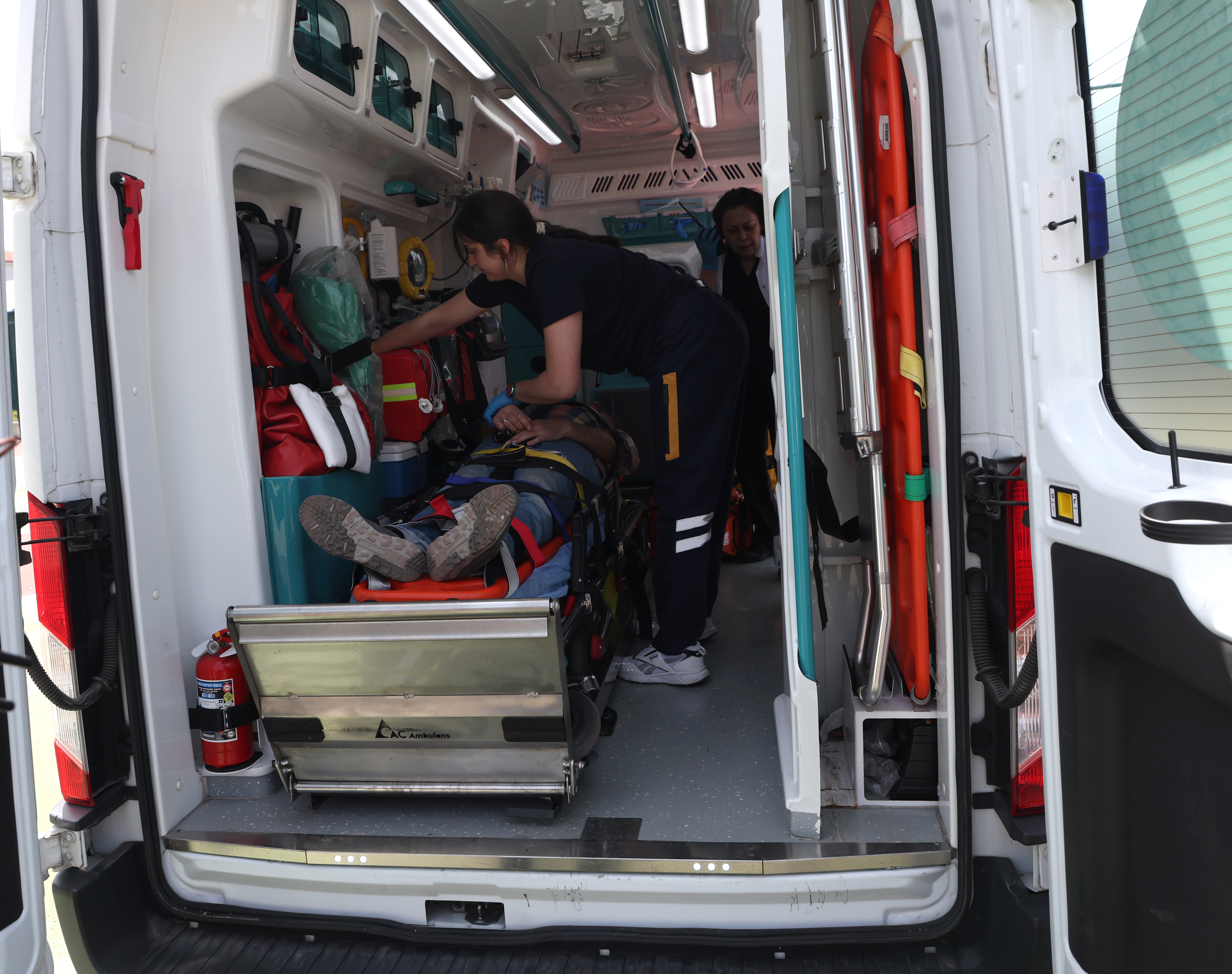 Müdahalenin ardından hasta sedye ile ambulansa alındı.