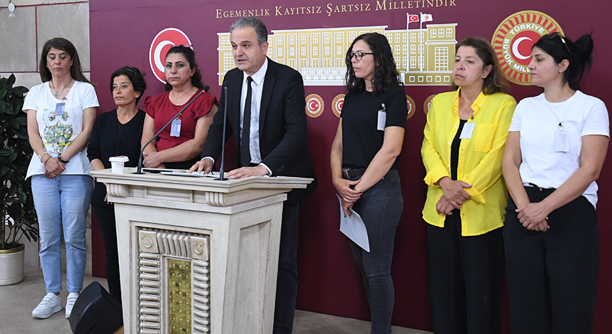 Bayhan, Meclis'te, Çiğli Belediyesi tarafından işten çıkarılan kadın işçilerle basın toplantısı düzenledi.