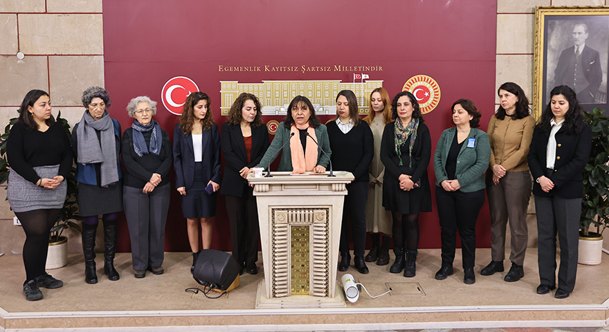 Saki ve Kaya, TBMM'de farklı kadın hareketlerinden temsilcilerin de katılımıyla basın toplantısı düzenledi.