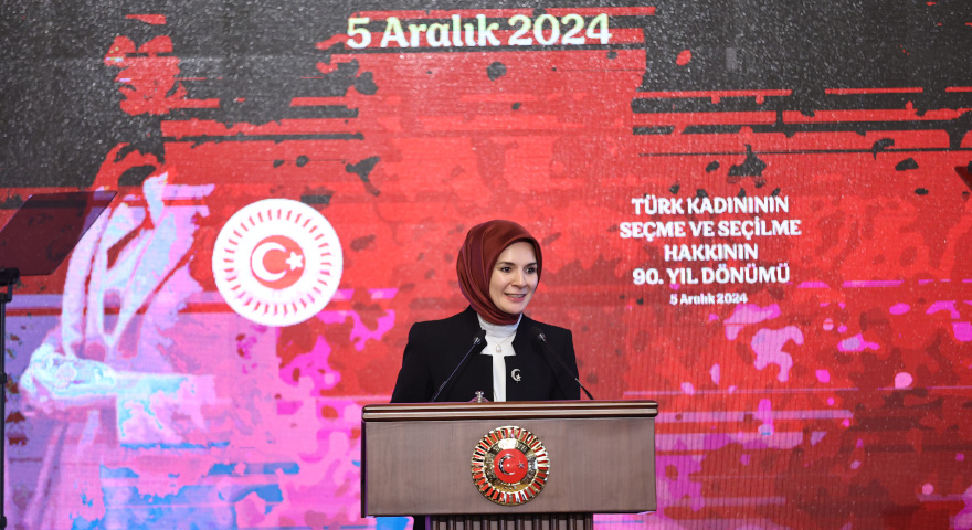 "Başörtüsü nedeniyle birçok kadının eğitim, istihdam ve temsiliyetten uzaklaştırıldığı bir dönemi, çok da uzak olmayan bir geçmişte yaşadık. Bu anlamda, özellikle son 23 yılda, Cumhurbaşkanımızın liderliğinde kadınların temsil ve katılımlarının önündeki tüm engelleri aştık. Kadınların her alanda söz sahibi olduğu ve aktif rol aldığı bir Türkiye'yi inşa ettik. Bu anlayışla, her bir kadının hak, fırsat ve imkanlardan adil bir şekilde yararlanmalarını sağladık. Anayasa başta olmak üzere temel kanunlarda, kadın erkek eşitliğini gözeten, pozitif ayrımcılığı destekleyen, her türlü şiddeti ve ayrımcılığı ortadan kaldıran düzenlemeleri hayata geçirdik."