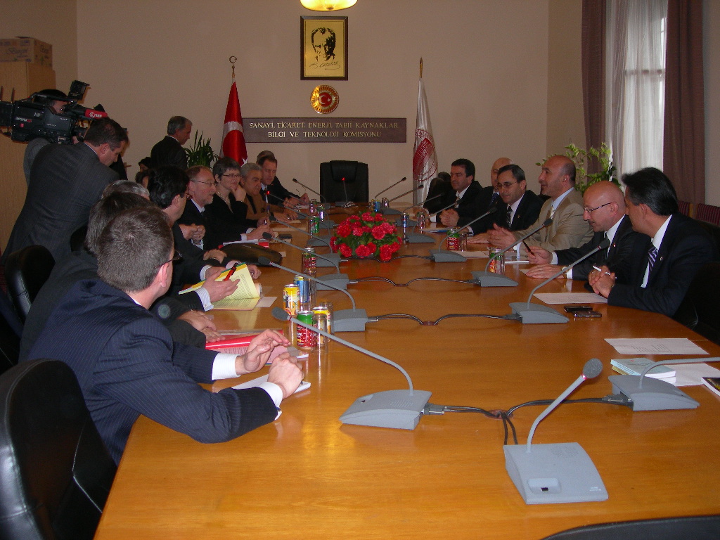 Türkiye'nin Avrupa Birliğine katılımının ekonomik sonucunu incelemek üzere TBMM'yi ziyaret eden konuk heyete, Sanayi, Ticaret, Enerji, Tabii Kaynaklar, Bilgi ve Teknoloji Komisyonunun çalışmaları ve Parlamento'daki rolü hakkında bilgi verildi.