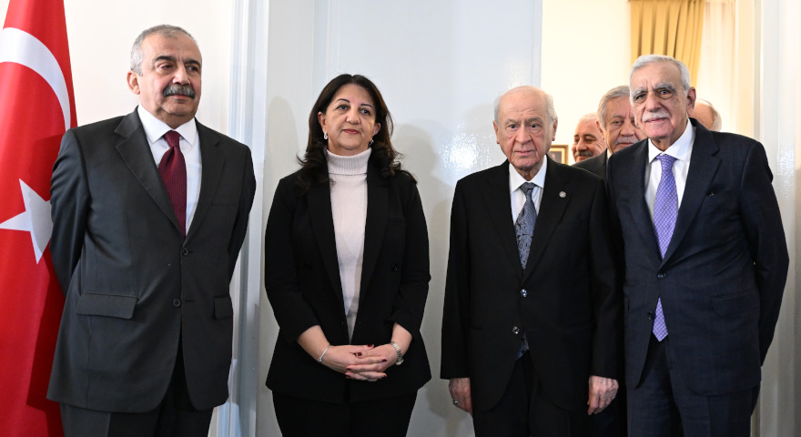 Bahçeli'nin Meclis'teki makamında gerçekleşen görüşmeye, DEM Parti Van Milletvekili Pervin Buldan ve İstanbul Milletvekili Sırrı Süreyya Önder ile İçişleri Bakanlığınca Mardin Büyükşehir Belediye Başkanlığı görevinden uzaklaştırılan DEM Partili Ahmet Türk katıldı.