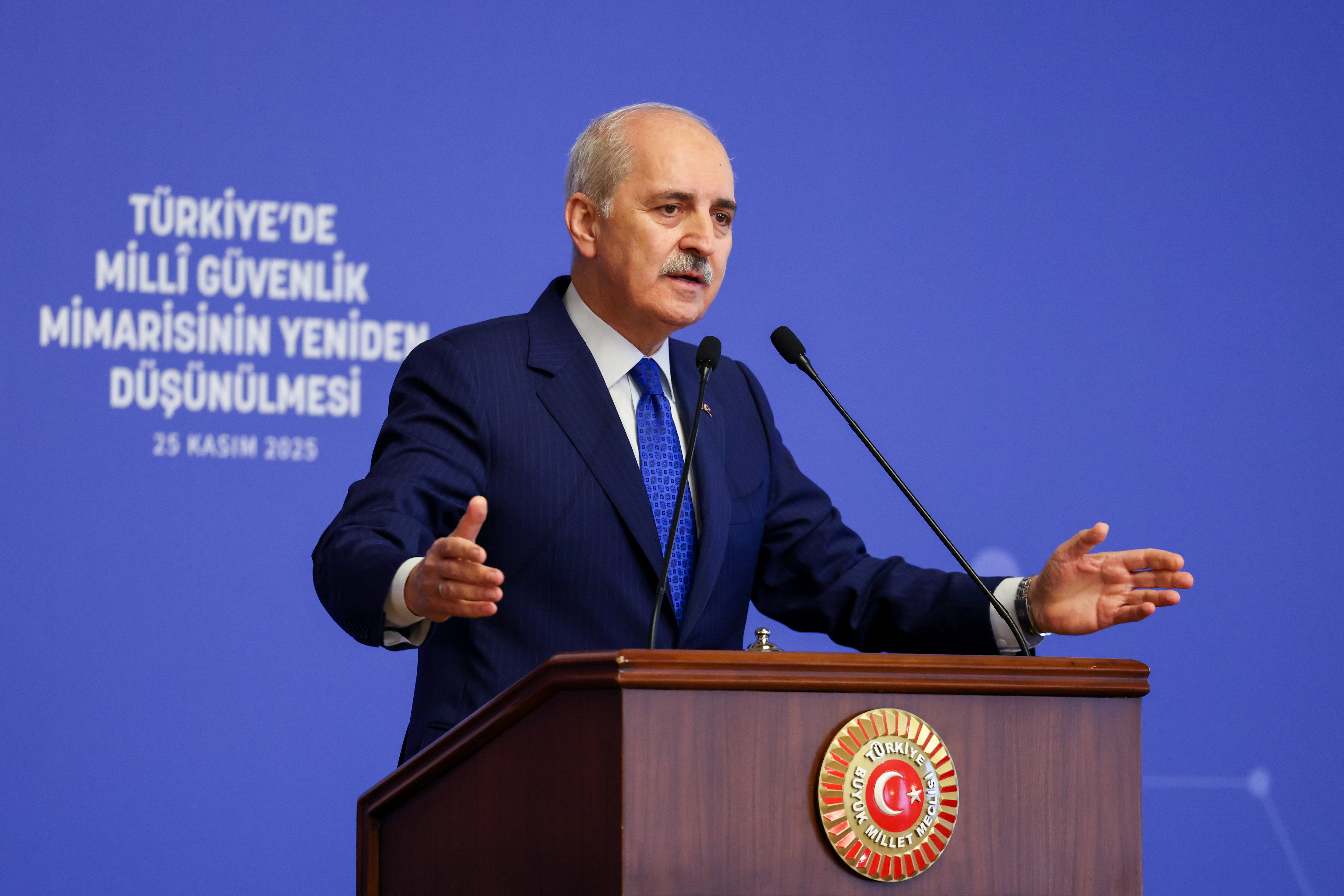 TBMM Başkanı Kurtulmuş, Türkiye’nin güvenlik mimarisinin temelinin asla ve asla “içe kapanmacı bir anlayışla” olmayacağının altını çizdi.