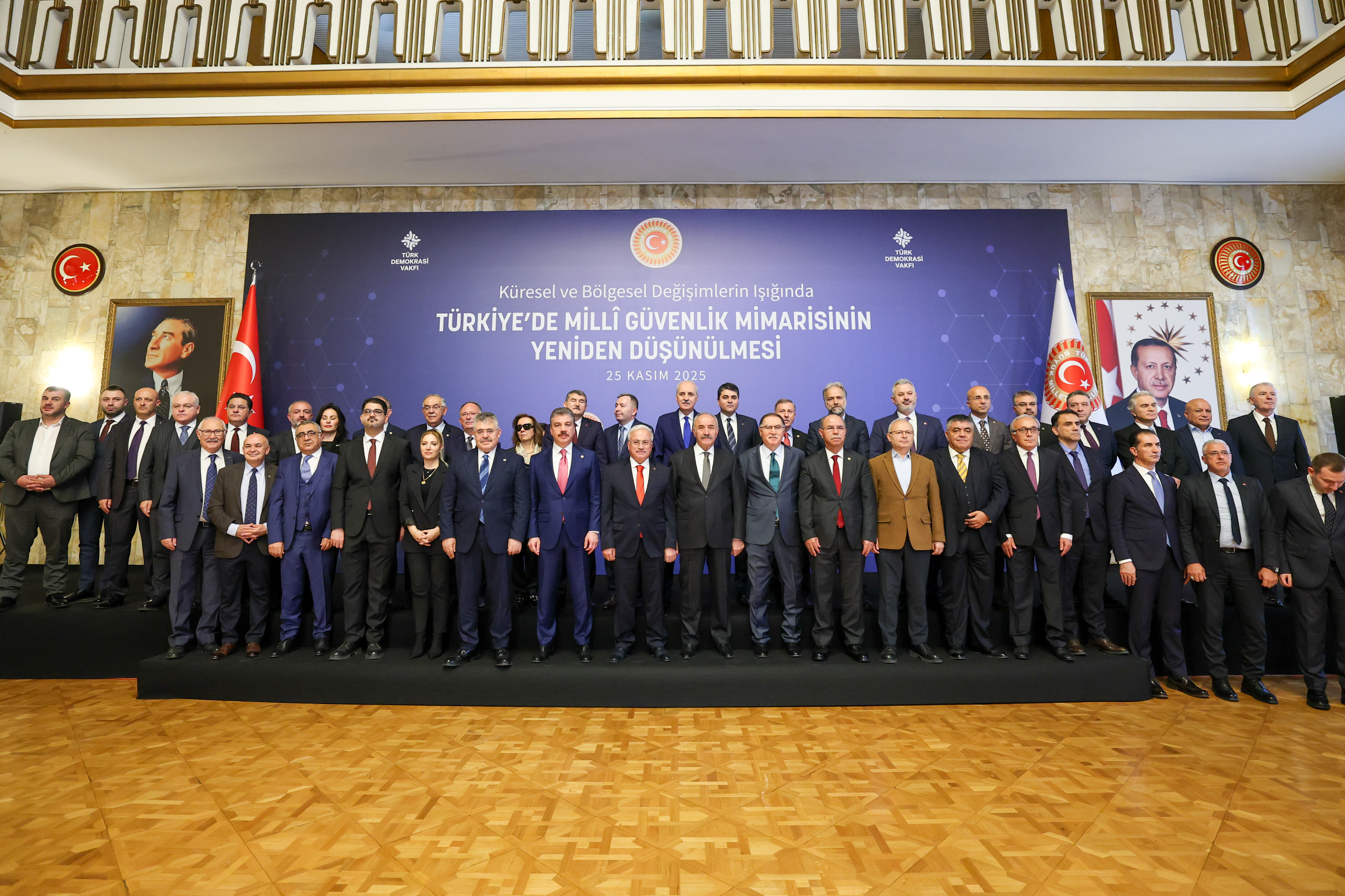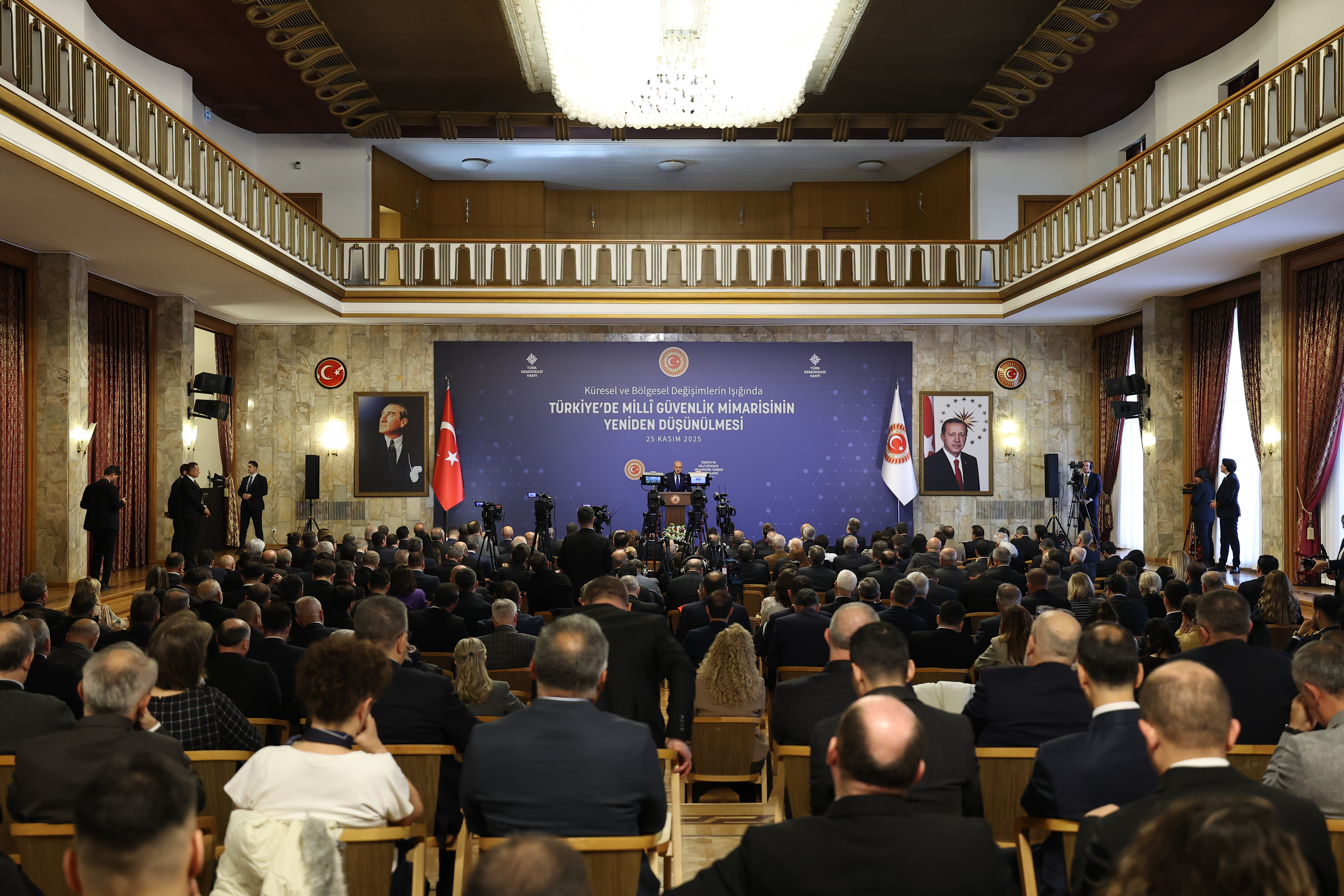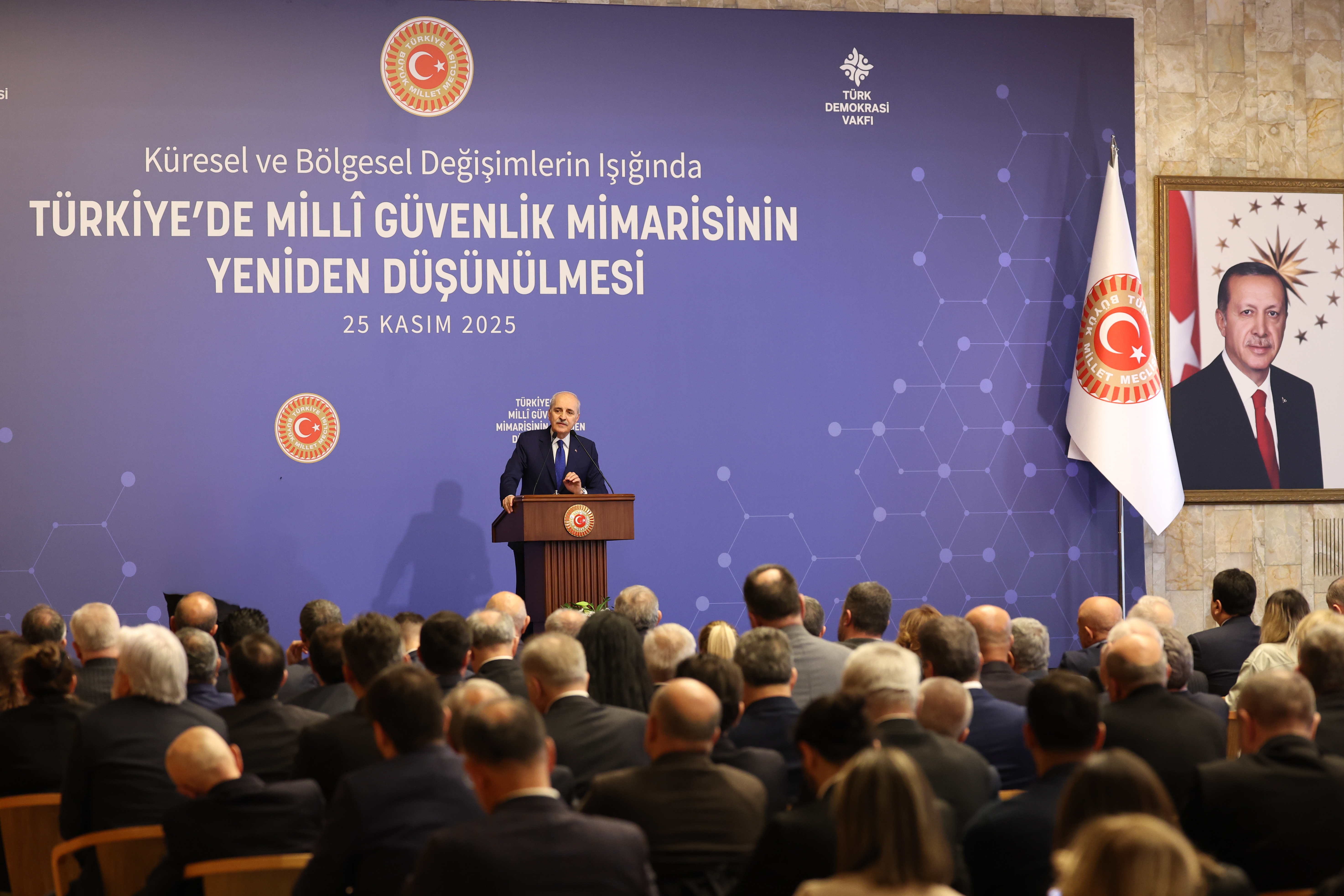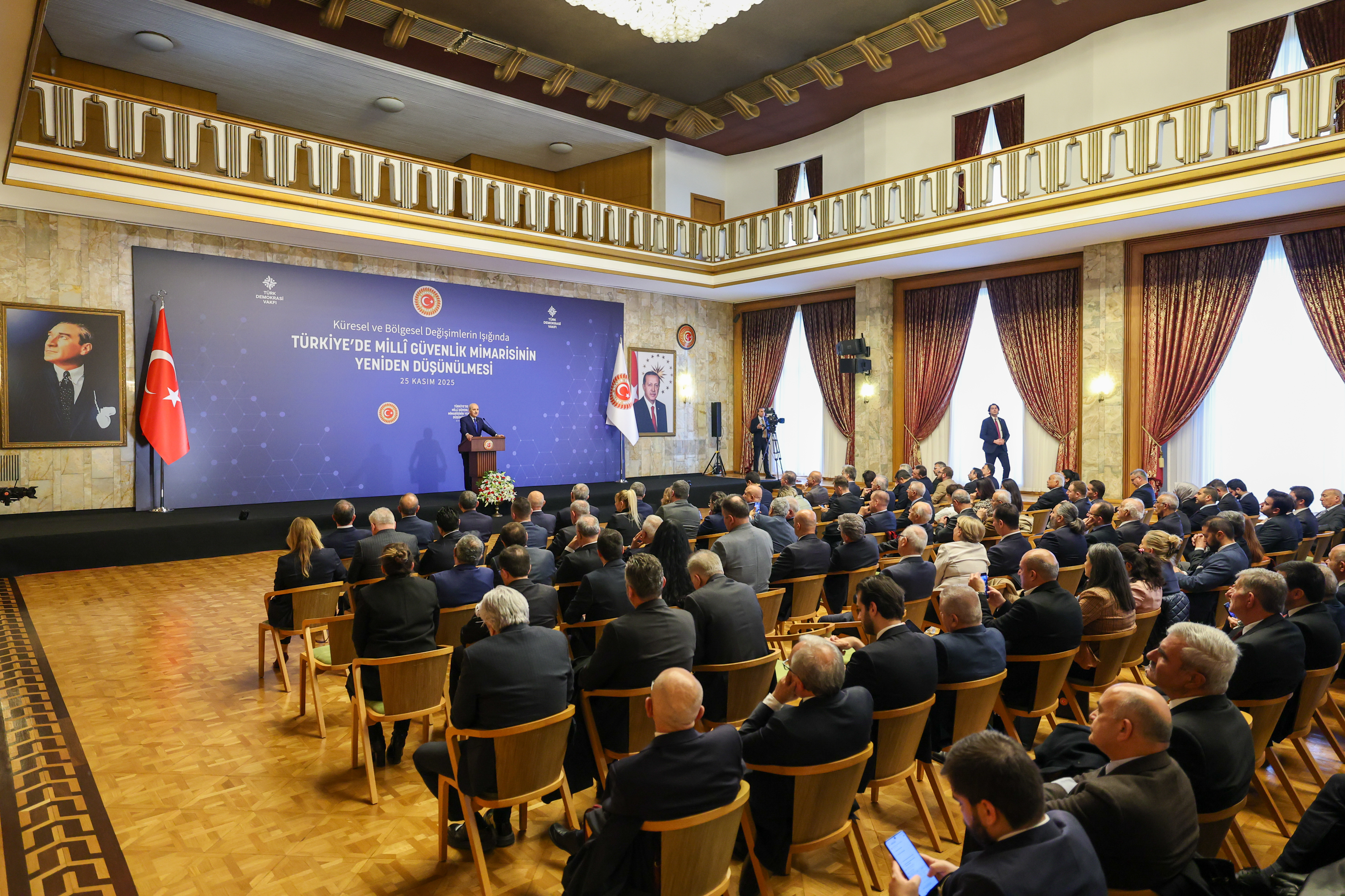Türk Demokrasi Vakfı tarafından TBMM Başkanı Kurtulmuş'un himayesinde TBMM Tören Salonu'nda "Küresel ve Bölgesel Değişimlerin Işığında Türkiye'de Milli Güvenlik Mimarisinin Yeniden Düşünülmesi" programı düzenlendi.