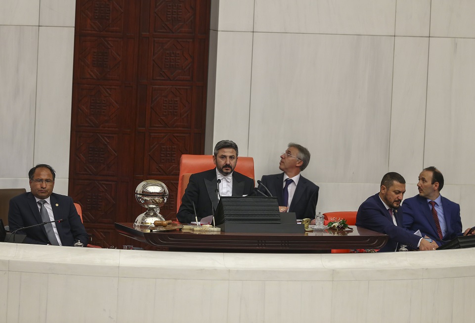 Meclis Genel Kurulu'nda, Cumhurbaşkanı Recep Tayyip Erdoğan'ın yeni yasama dönemi açılış konuşmasının ardından verilen aradan sonra TBMM Başkanı İsmail Kahraman'ın yerine Başkanvekili Ahmet Aydın oturdu.