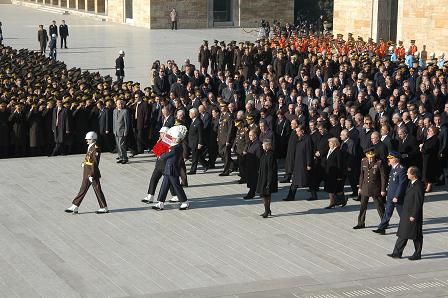 Cumhurbaşkanı Ahmet Necdet Sezer başkanlığındaki devlet erkanı, Atatürk'ün kabrine çelenk koyarak, manevi huzurunda saygı duruşunda bulundu.