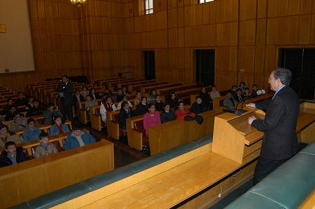 Alptekin, daha sonra öğrencilerle anı fotoğrafı çektirdi.