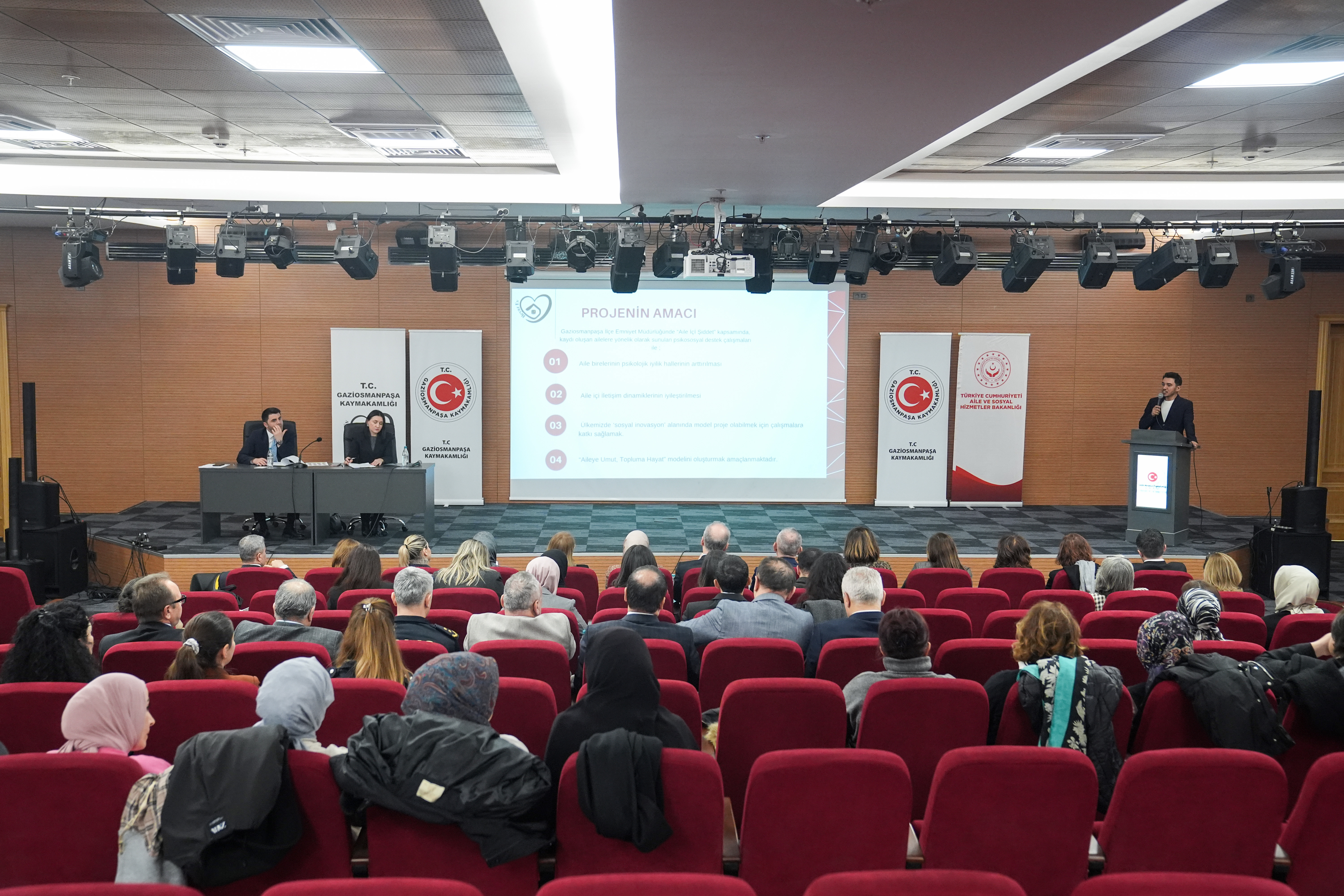 Komisyon üyelerine, Gaziosmanpaşa Kaymakamlığı Konferans Salonu'nda, Beyaz Ev ile Aile Destek Merkezi bünyesindeki projelerle ilgili sunum yapıldı. Gaziosmanpaşa Kaymakamı İskender Yönden, kadına ve aileye yönelik ilçede yürütülen projeleri anlattı.