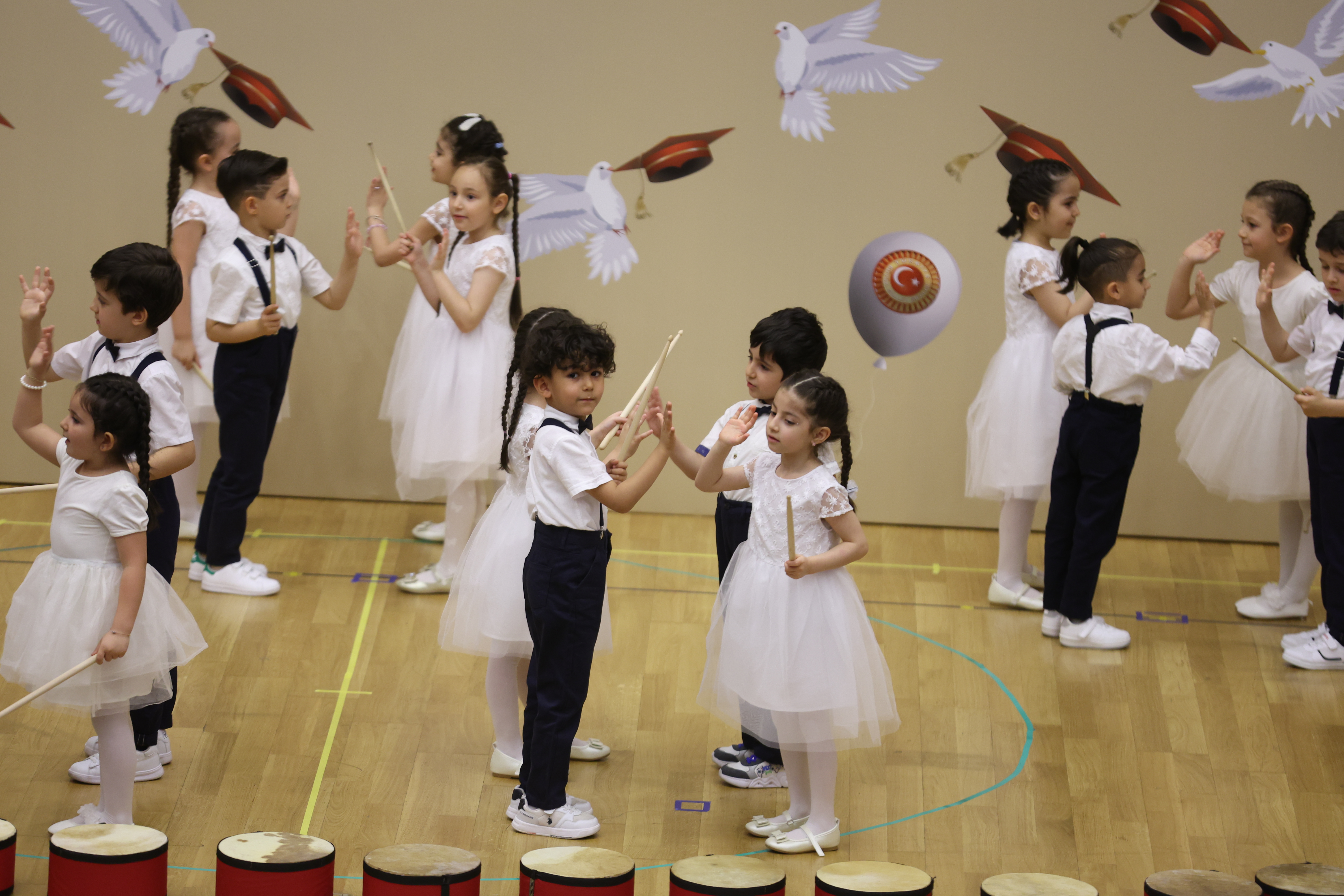 Saygı duruşu ve İstiklal Marşı ile başlayan törende minik çocuklar hazırladıkları gösterileri sergiledi.