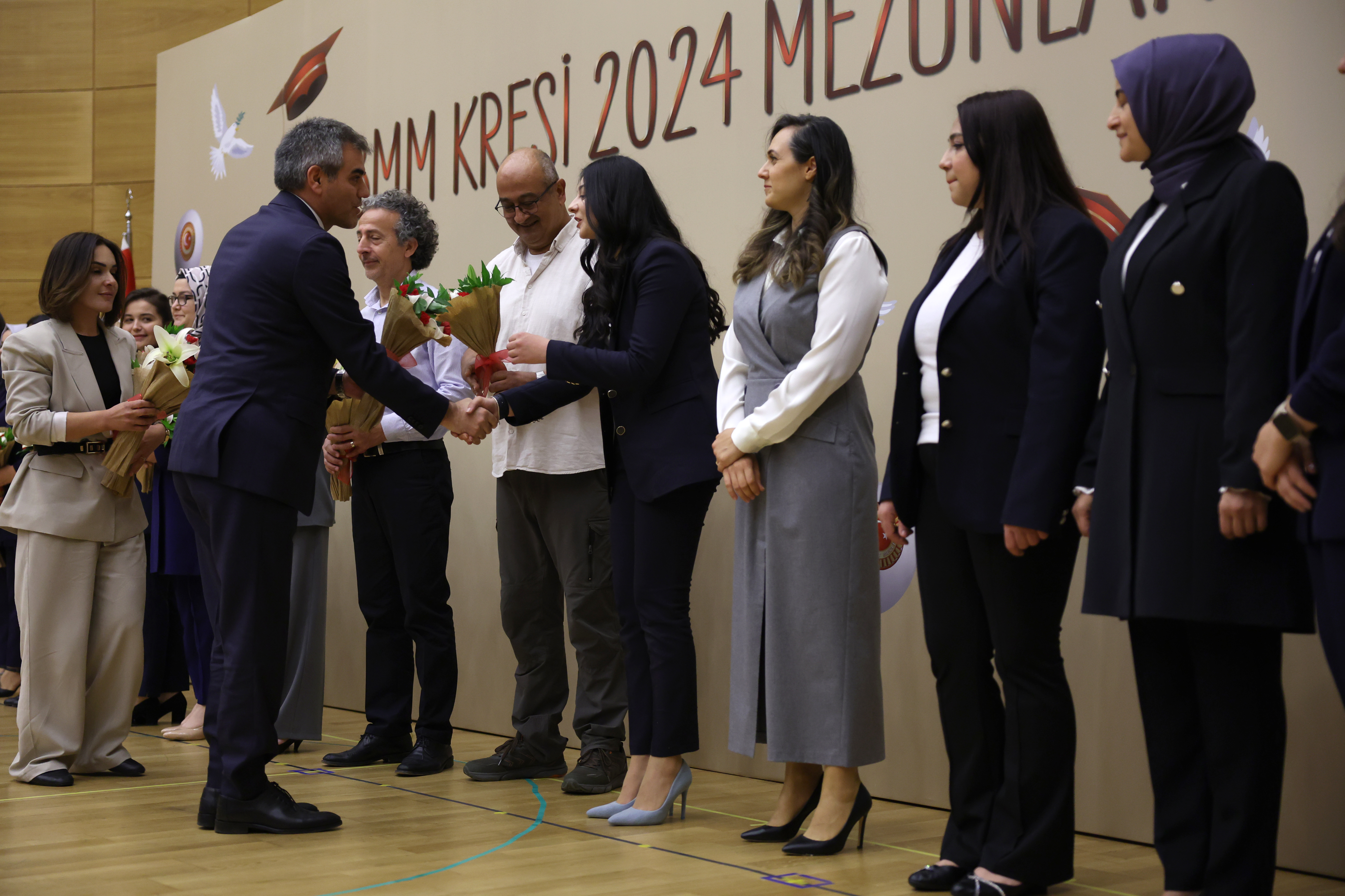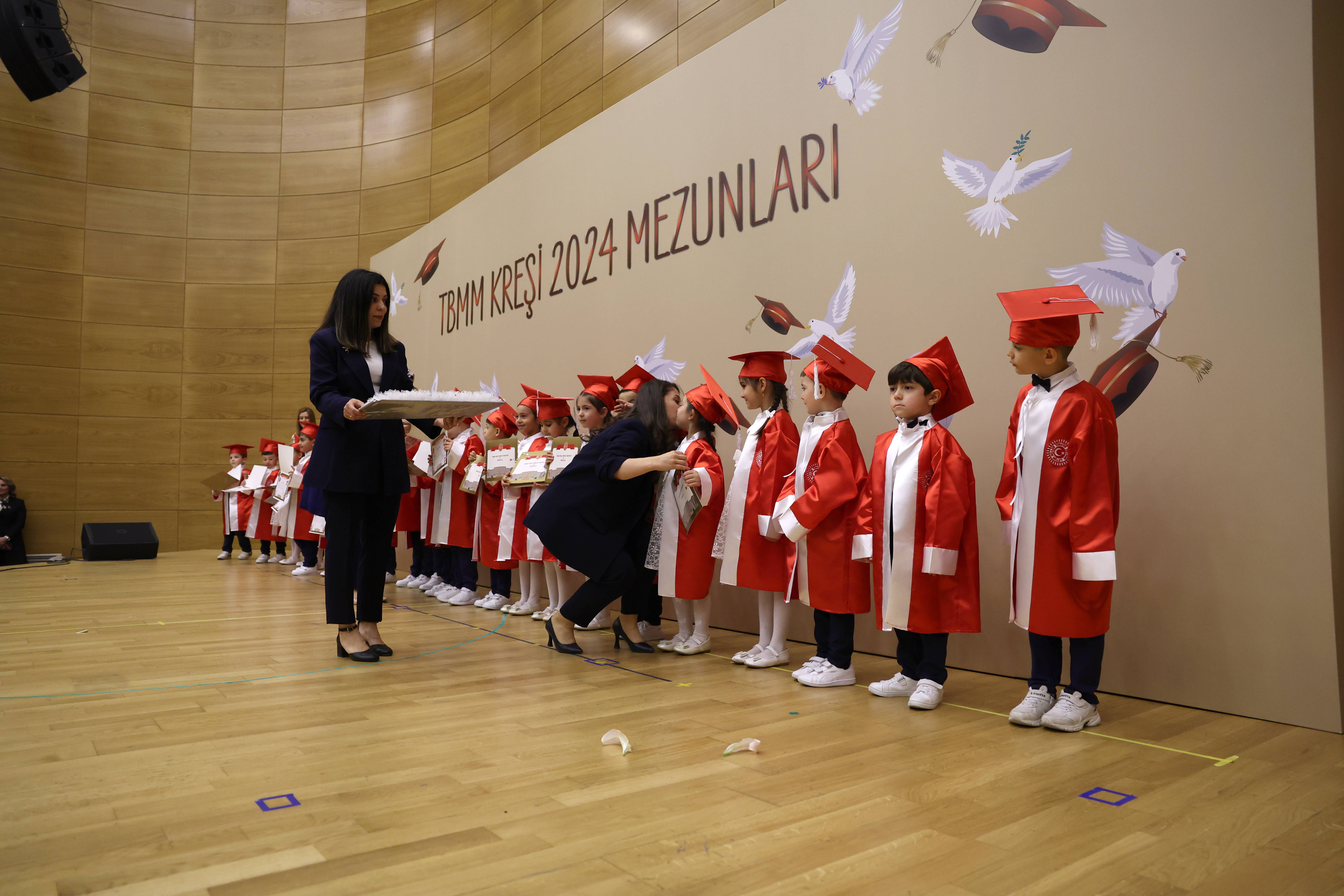 Talip Uzun’un konuşmasının ardından çocuklar tek tek sahneye çağrılarak mezuniyet belgeleri verildi.