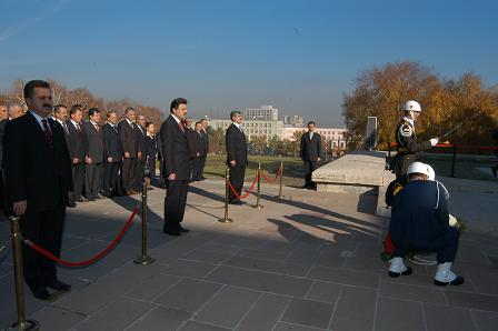 TBMM Başkanvekili Nevzat Pakdil, saat 09.05'de Meclis'teki Atatürk Anıtı'na çelenk koydu ve saygı duruşunda bulundu. Buradaki törene Başkanlık Divanı üyeleri, milletvekilleri, TBMM Bürokratları ve Meclis çalışanları katıldı.