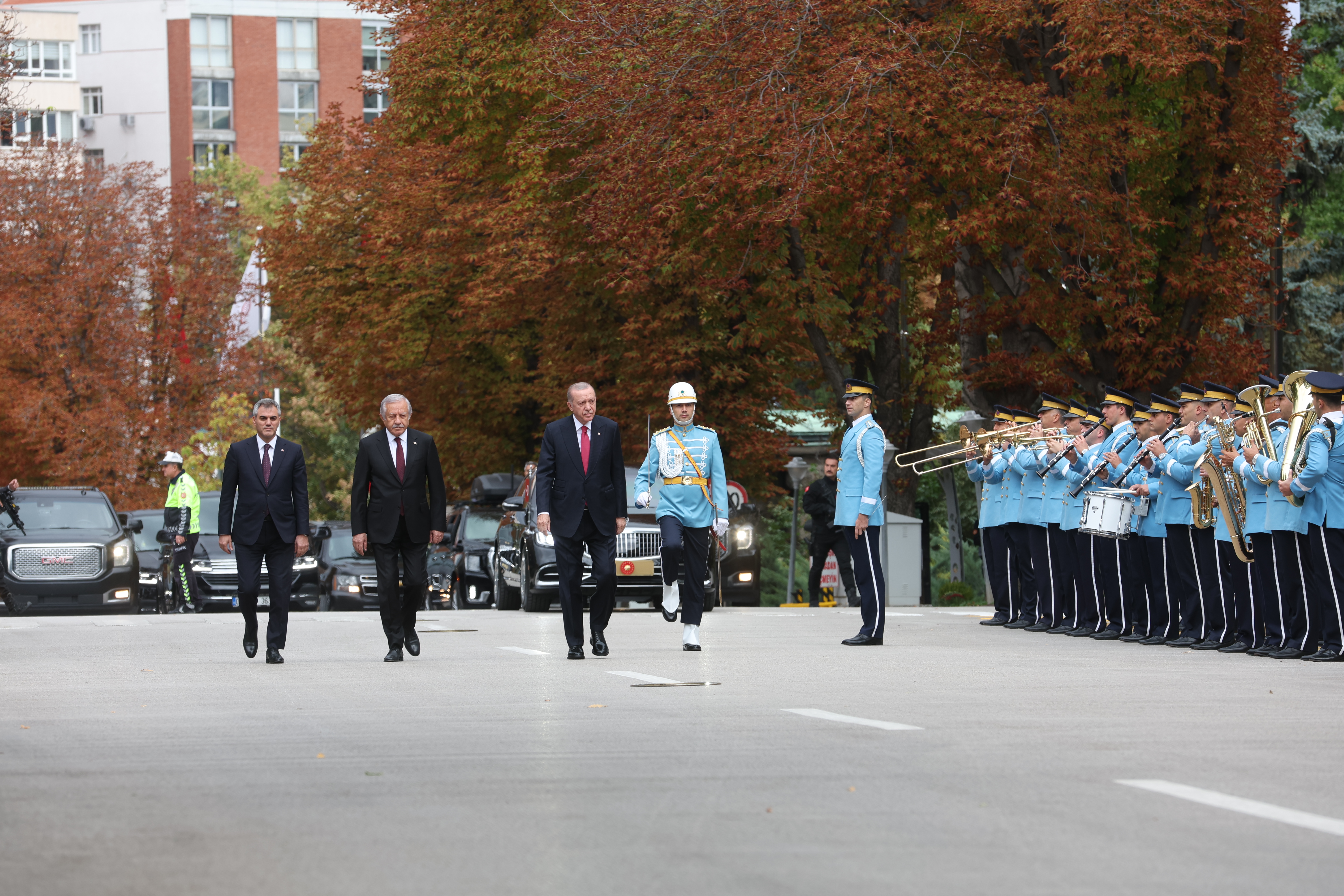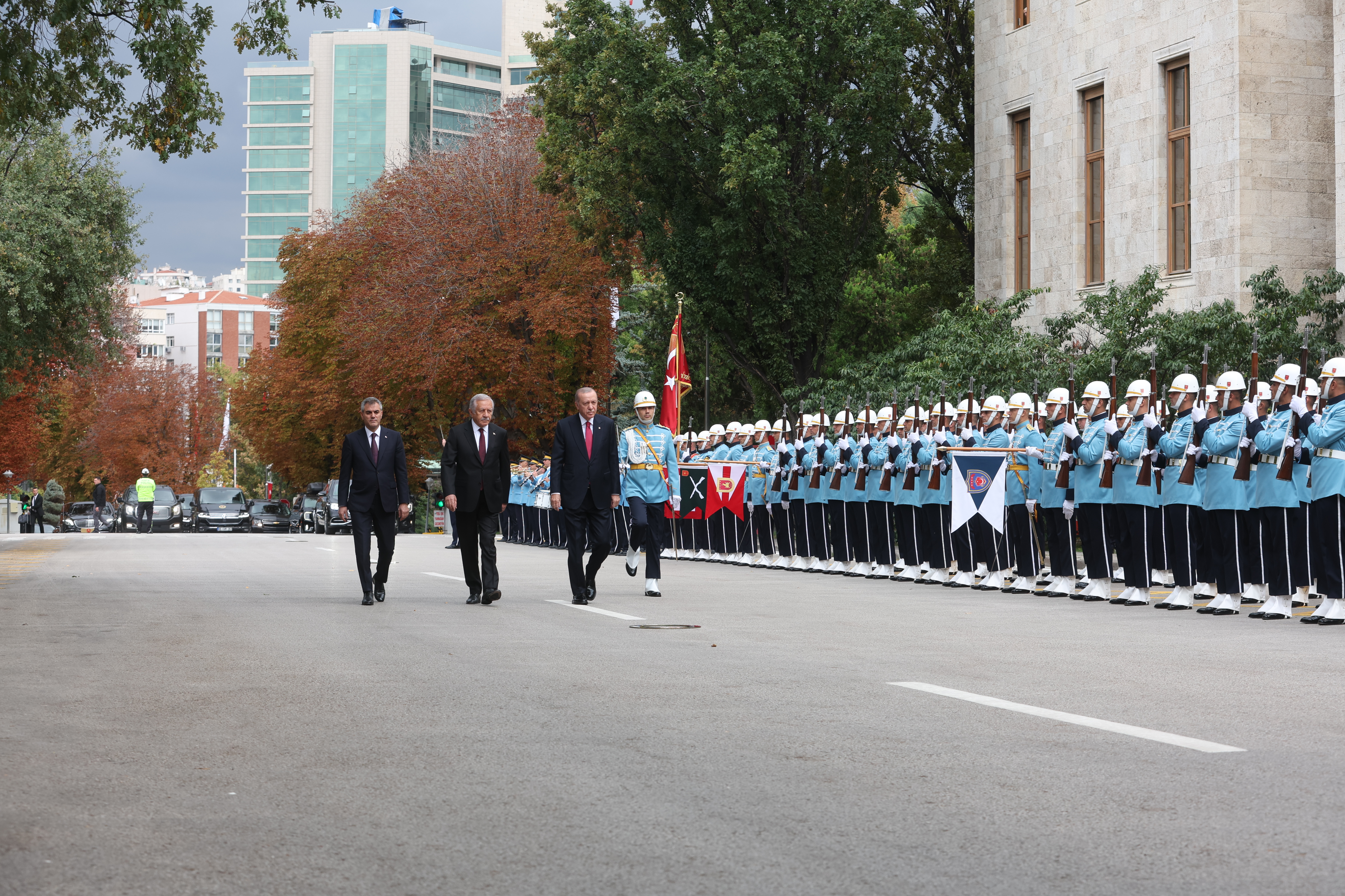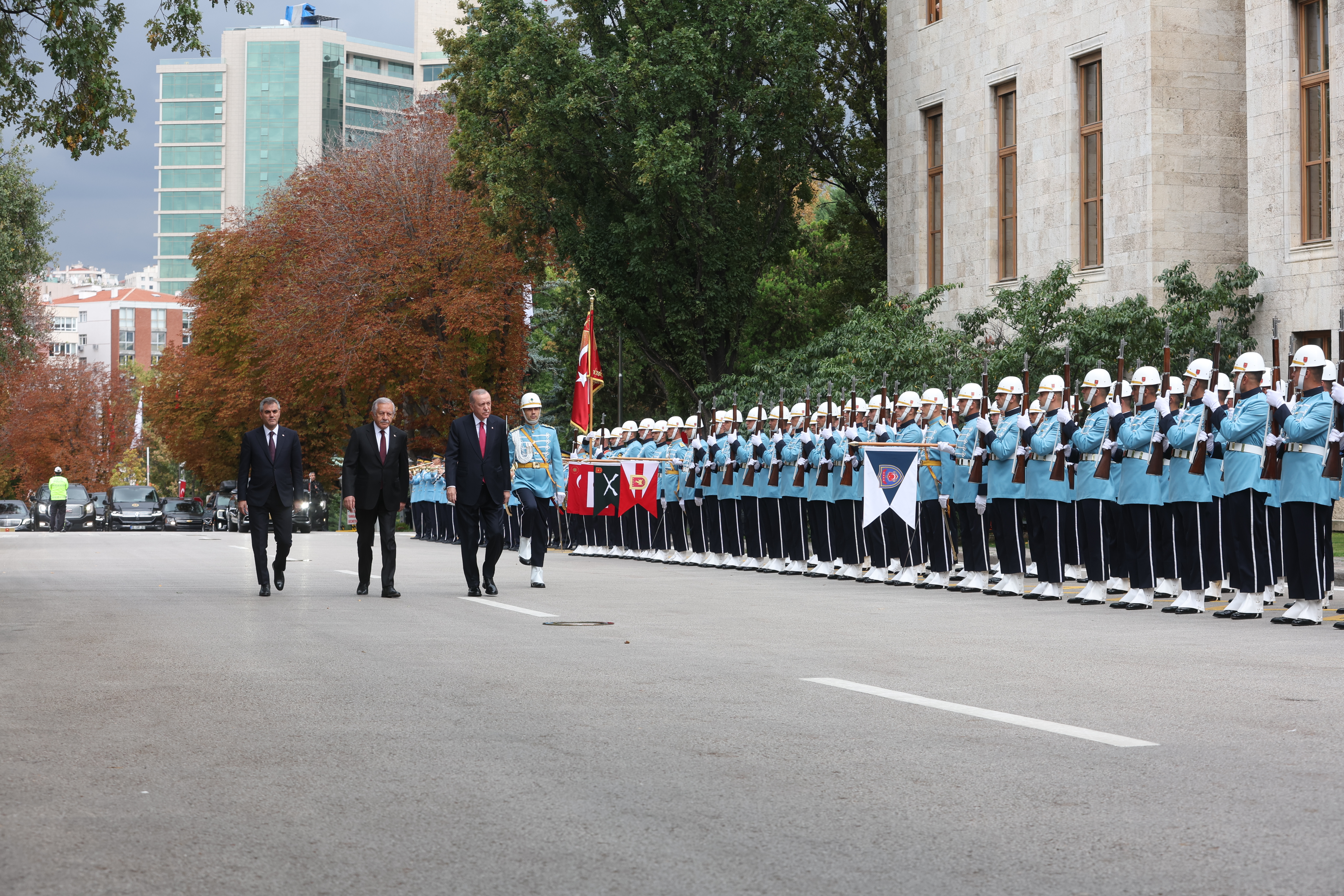 TBMM Başkanı Kurtulmuş, Cumhurbaşkanlığı Onur Kıtası'nı selamlayan Cumhurbaşkanı Erdoğan'ı Şeref Kapısı önünde karşıladı.