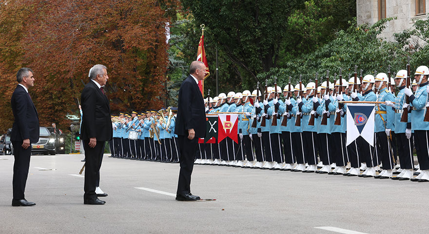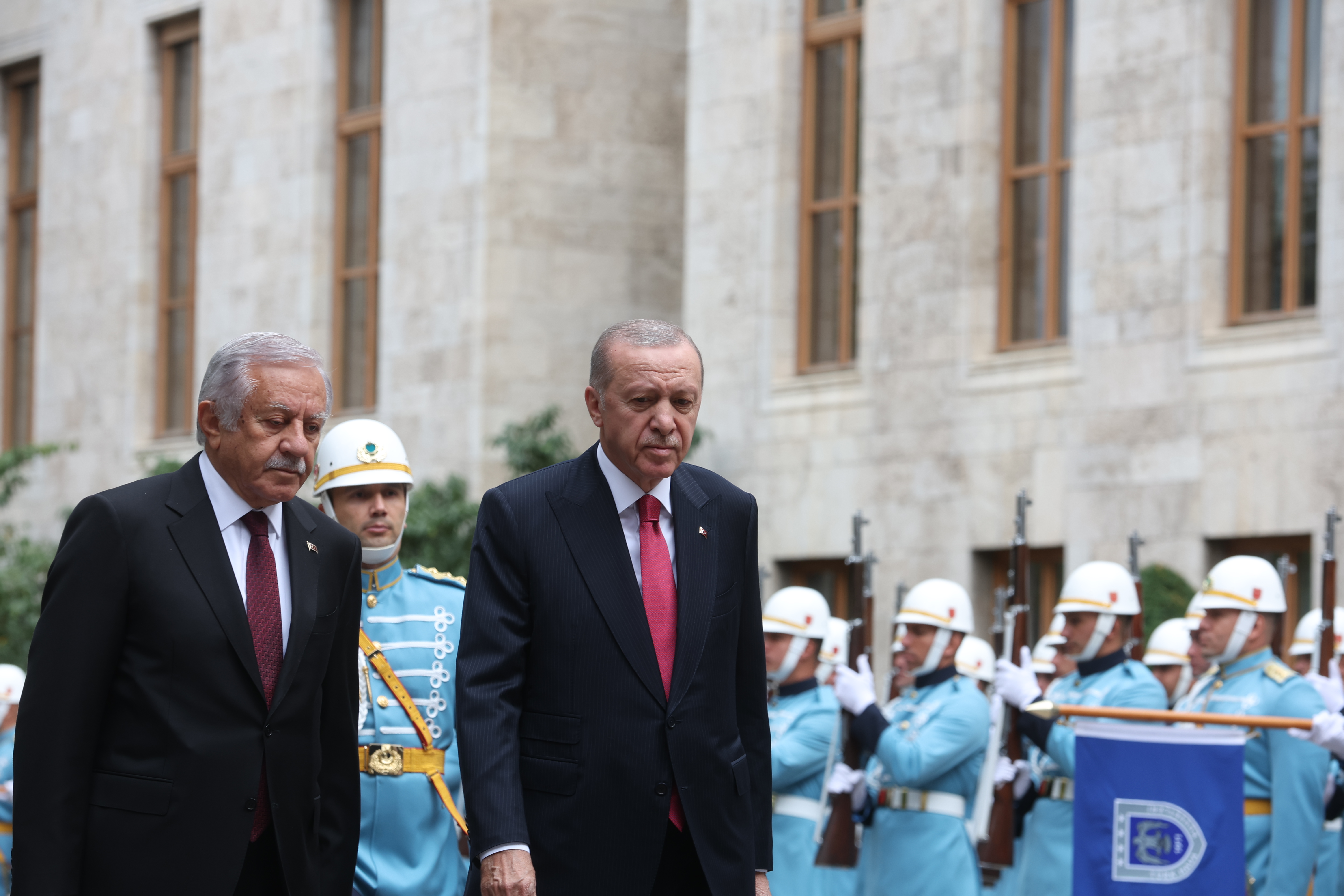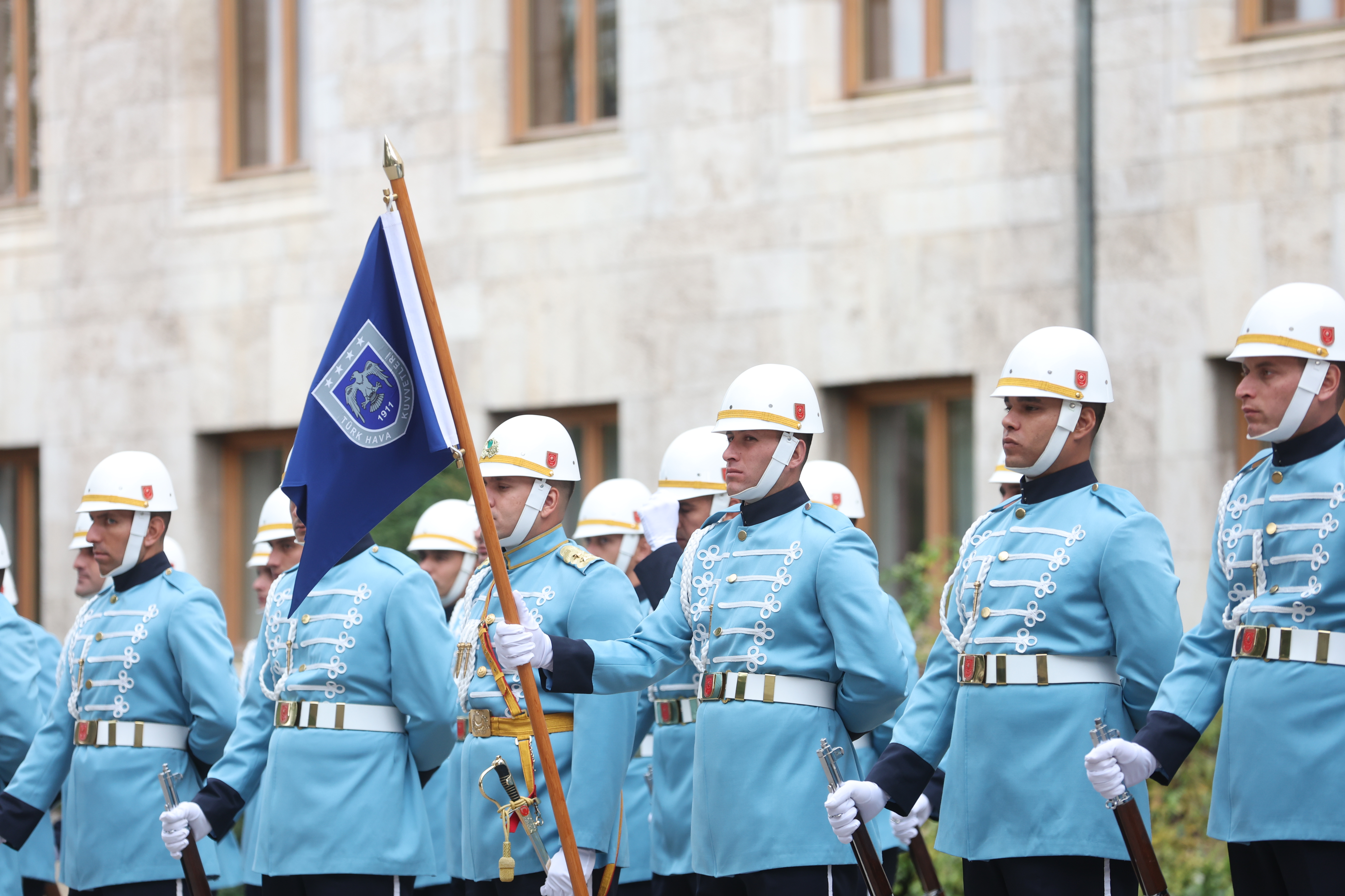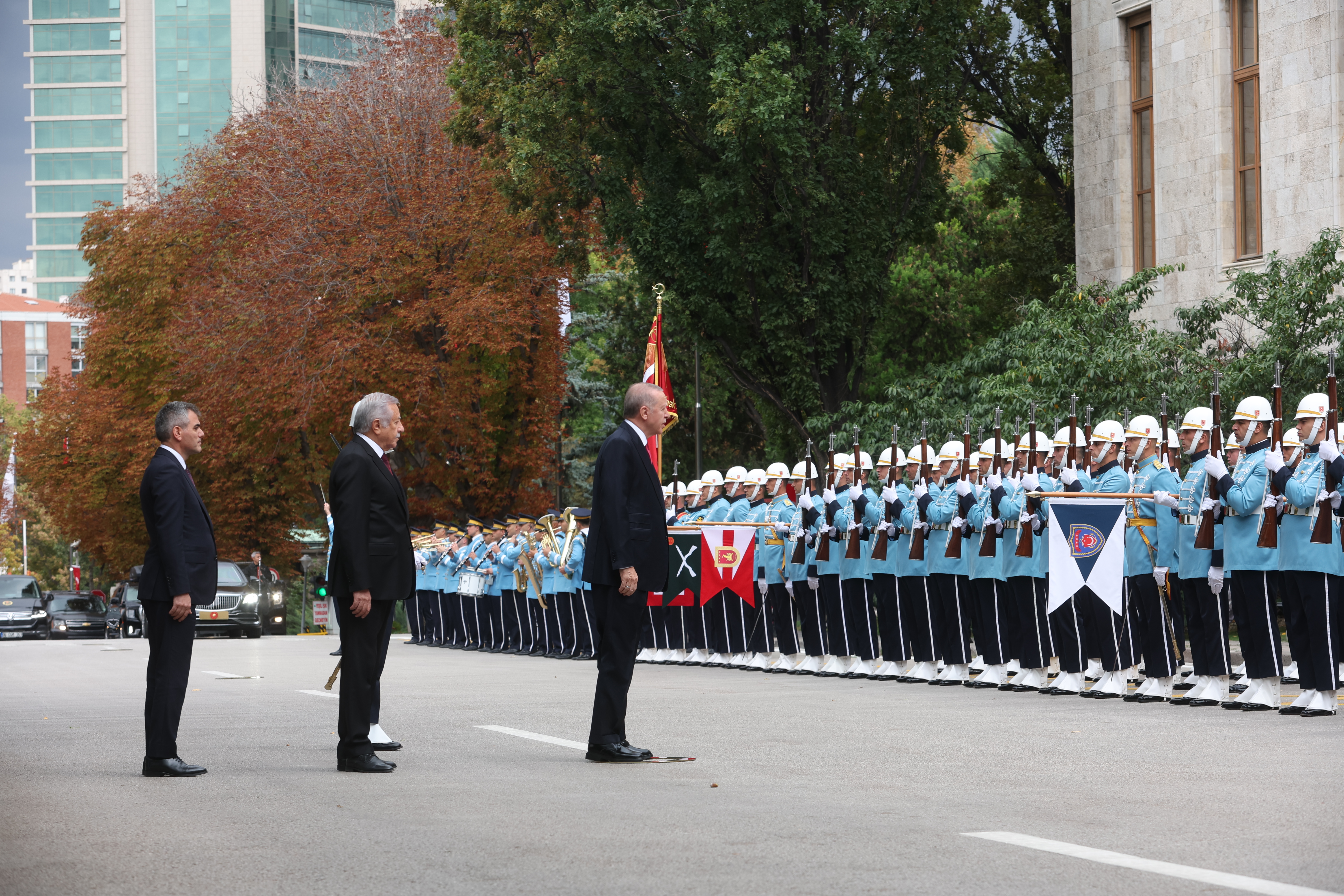 TBMM Başkanı Kurtulmuş, Cumhurbaşkanlığı Onur Kıtası'nı selamlayan Cumhurbaşkanı Erdoğan'ı Şeref Kapısı önünde karşıladı.