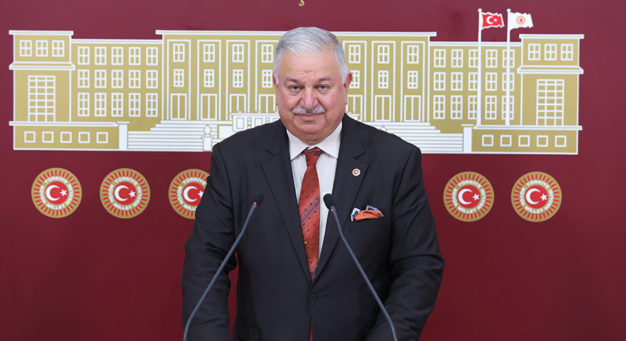 Yeniden Refah Partisi İstanbul Milletvekili Bekin, Meclis'te düzenlediği basın toplantısında, İsrail'in Refah kentindeki Filistinlilerin kampını bombalamasına tepki gösterdi.