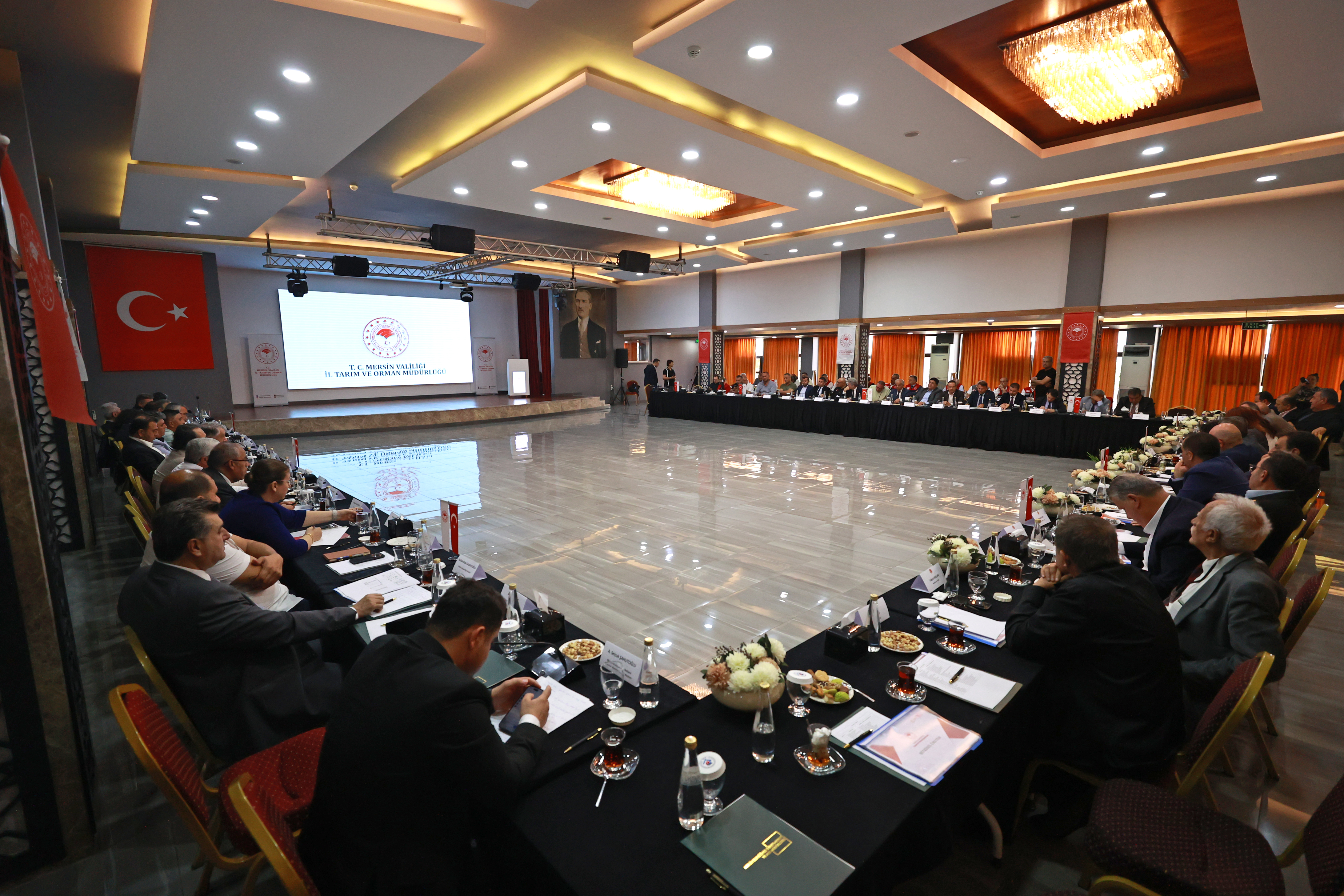 Toplantıya katılan Mersin Valisi Atilla Toros, zirai dondan etkilenen alanlara ilişkin bilgi verdi.