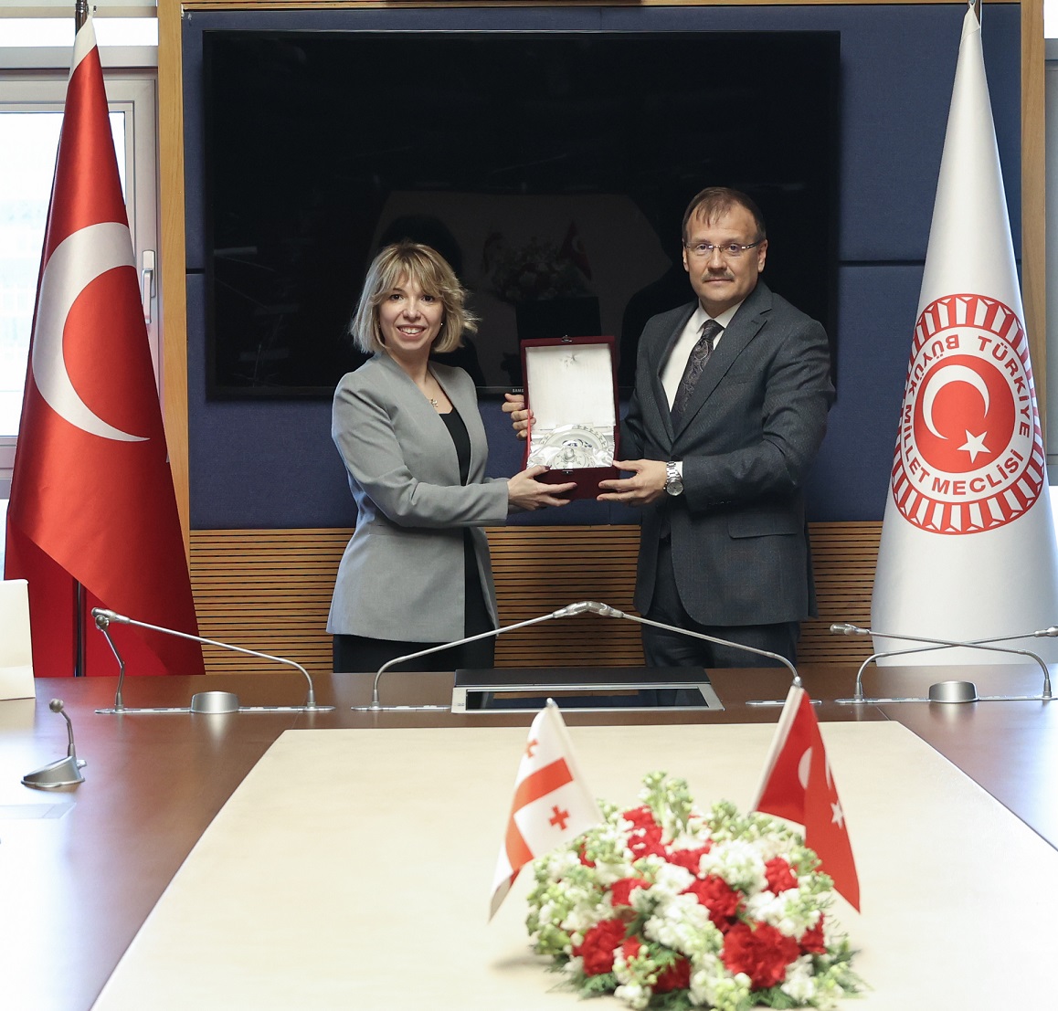 TBMM İnsan Haklarını İnceleme Komisyonu Başkanı ve AK Parti Bursa Milletvekili Hakan Çavuşoğlu, Gürcistan Ombudsmanı Nino Lomjaria ve beraberindeki heyetle bir araya geldi.