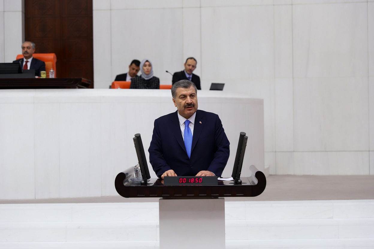Sağlık Bakanı Fahrettin Koca, TBMM Genel Kurulunda, yeni tip koronavirüsle (Kovid -19) mücadele kapsamında yürütülen çalışmalara ilişkin bilgilendirme yaptı.