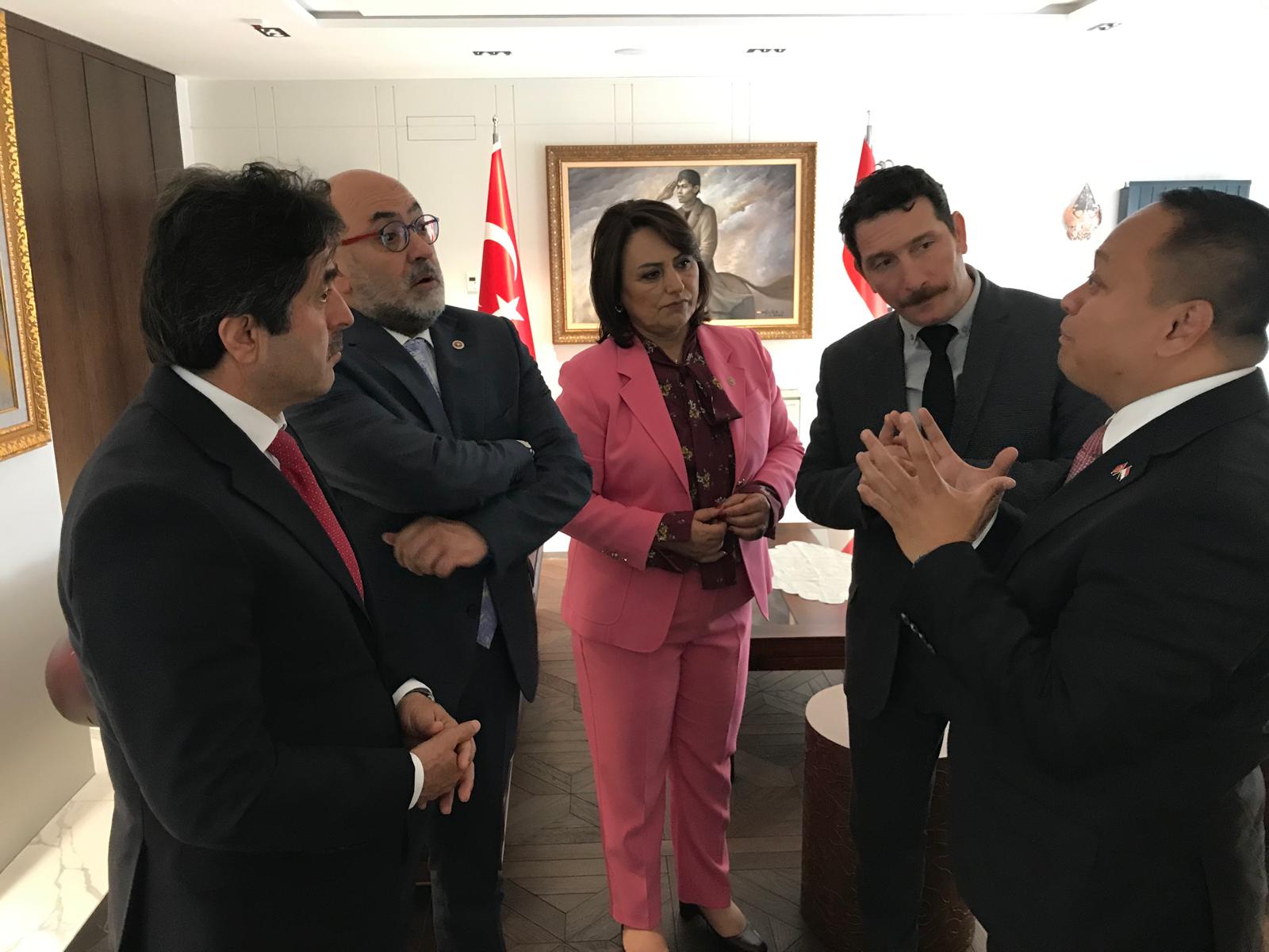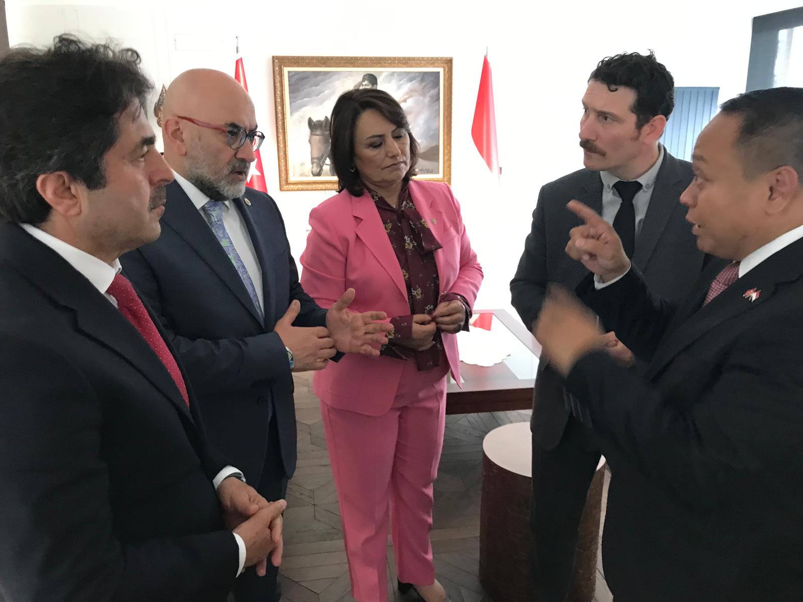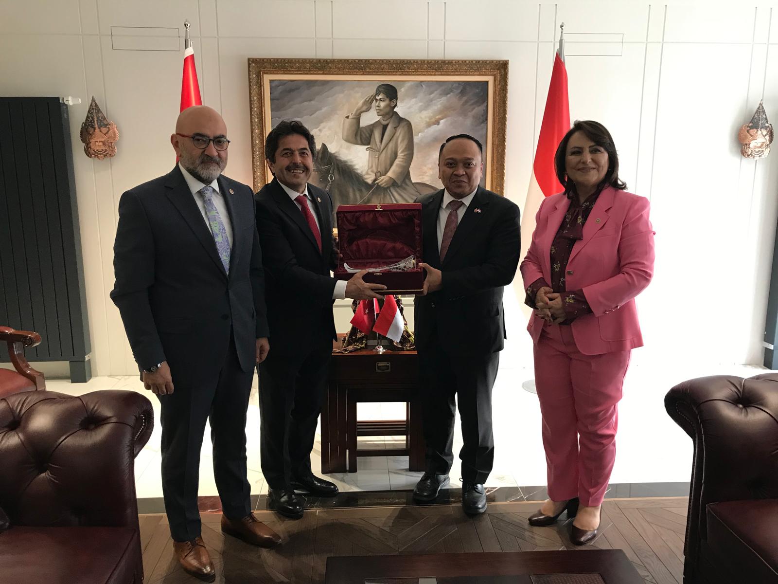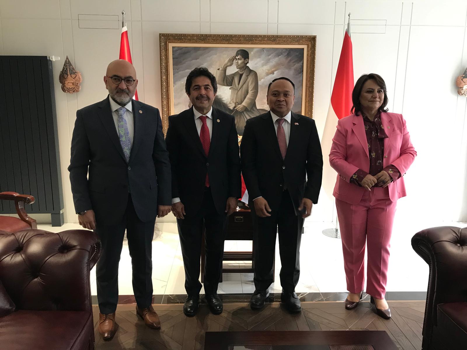 Endonezya’nın Ankara Büyükelçiliği binasında gerçekleşen ziyarette, ASEAN Parlamentolar Arası Asamblesi Türk Grubu Başkanı AK Parti Karaman Milletvekili Osman Sağlam’ın yanı sıra Türk Grubu üyeleri CHP Adana Milletvekili Müzeyyen Şevkin ve AK Parti Kayseri Milletvekili Murat Cahid Cıngı da hazır bulundu.