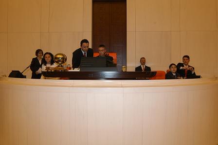 Bakan Çelik'in konuşmasından sonra TBMM Başkanı Bülent Arınç ve Başkanlık Divanı üyeleri yerlerini Öğrenci Meclisi temsilcilerine bıraktı. Öğrenci Meclisi Geçici Başkanlığı'nı ''En yaşlı üye'' Bünyamin Bozlak üstlenirken, ''İkinci yaşlı üye'' Muhammed Aydın Geçici Başkanvekili, ''En geç üyeler'' Mert Karaca ile Burcu Temur da katip üye oldu.