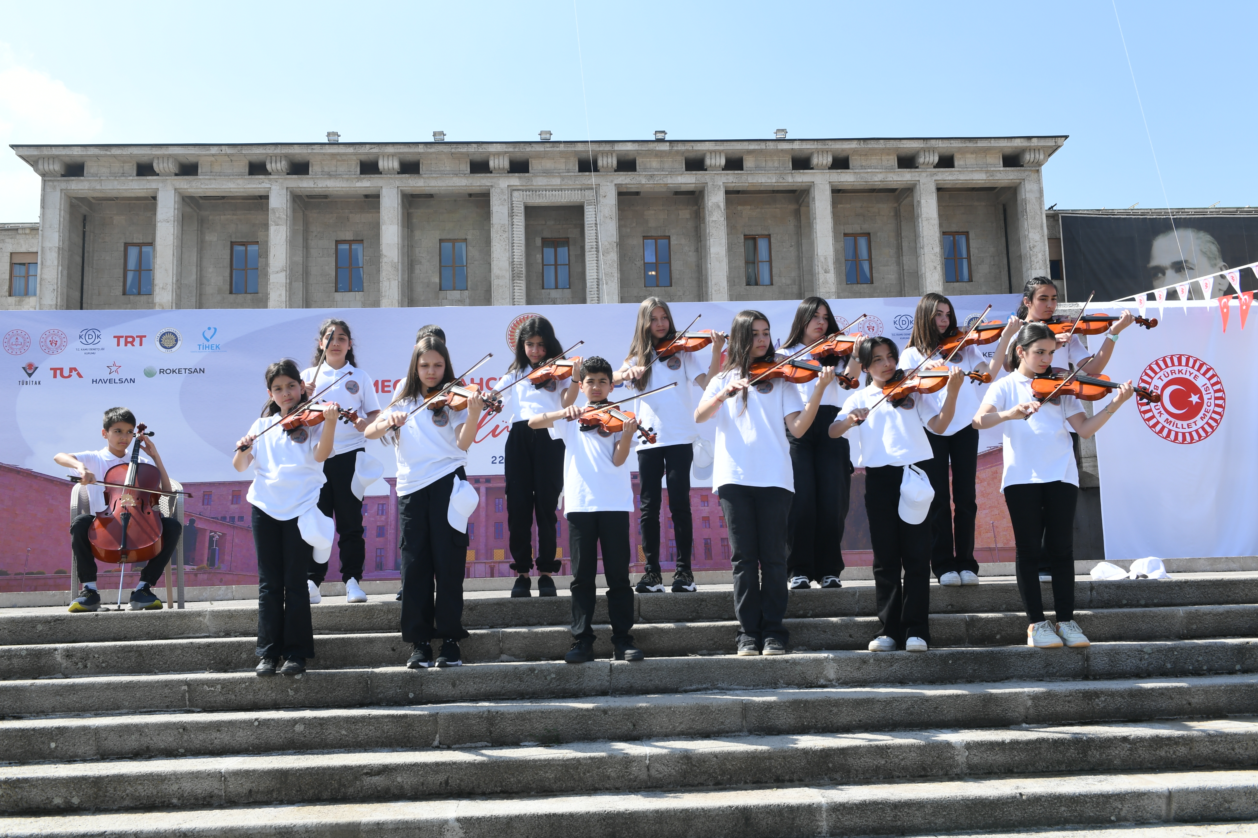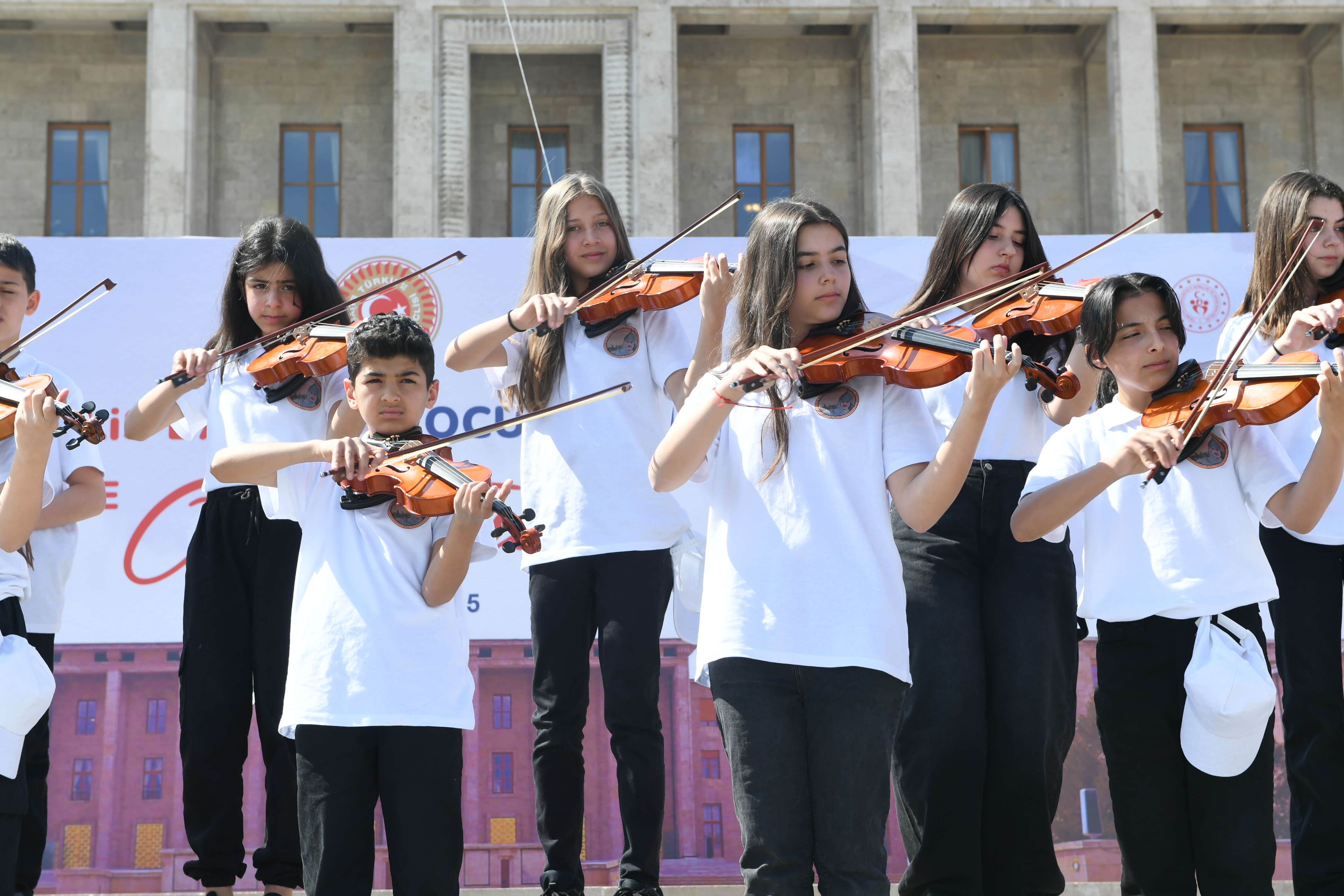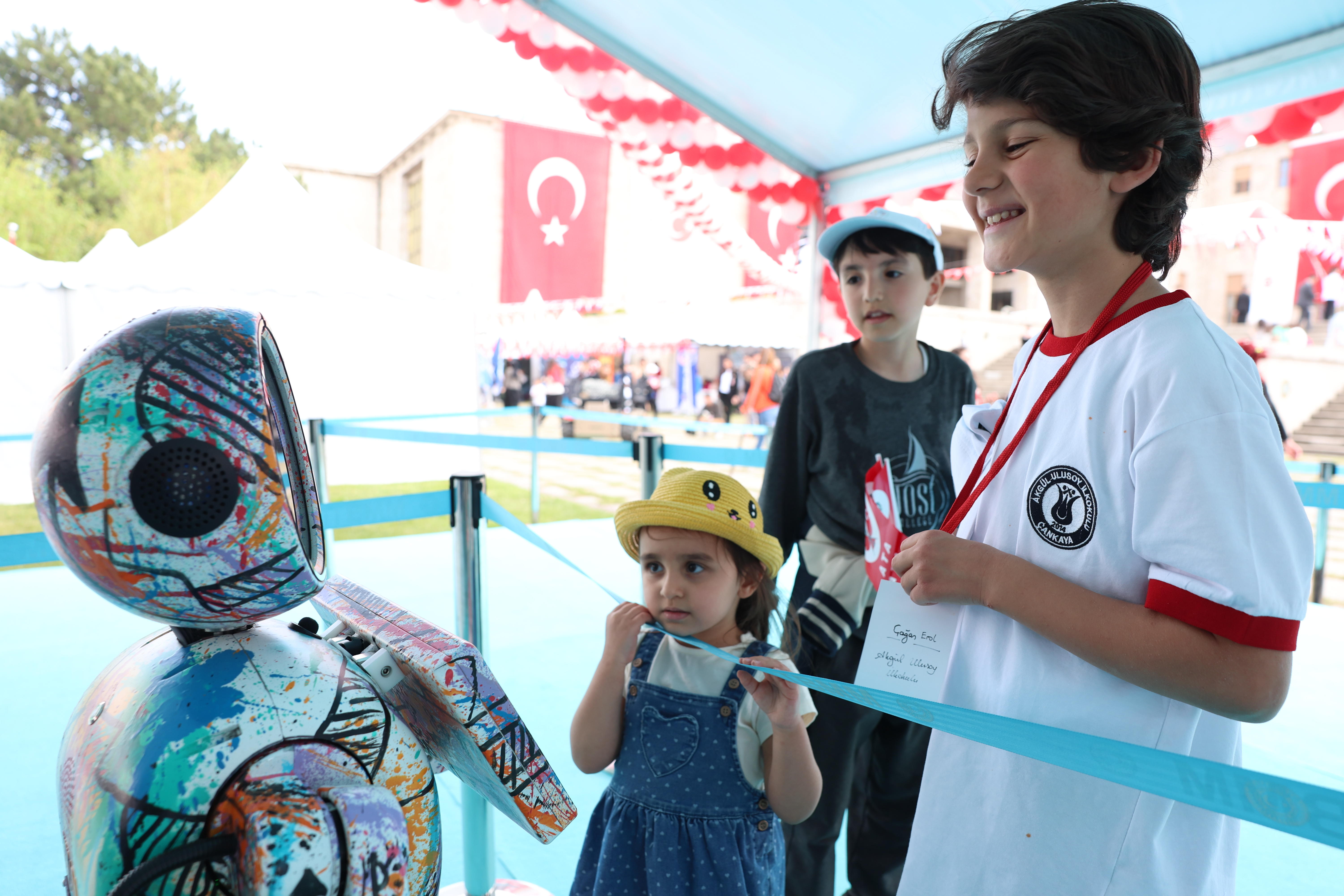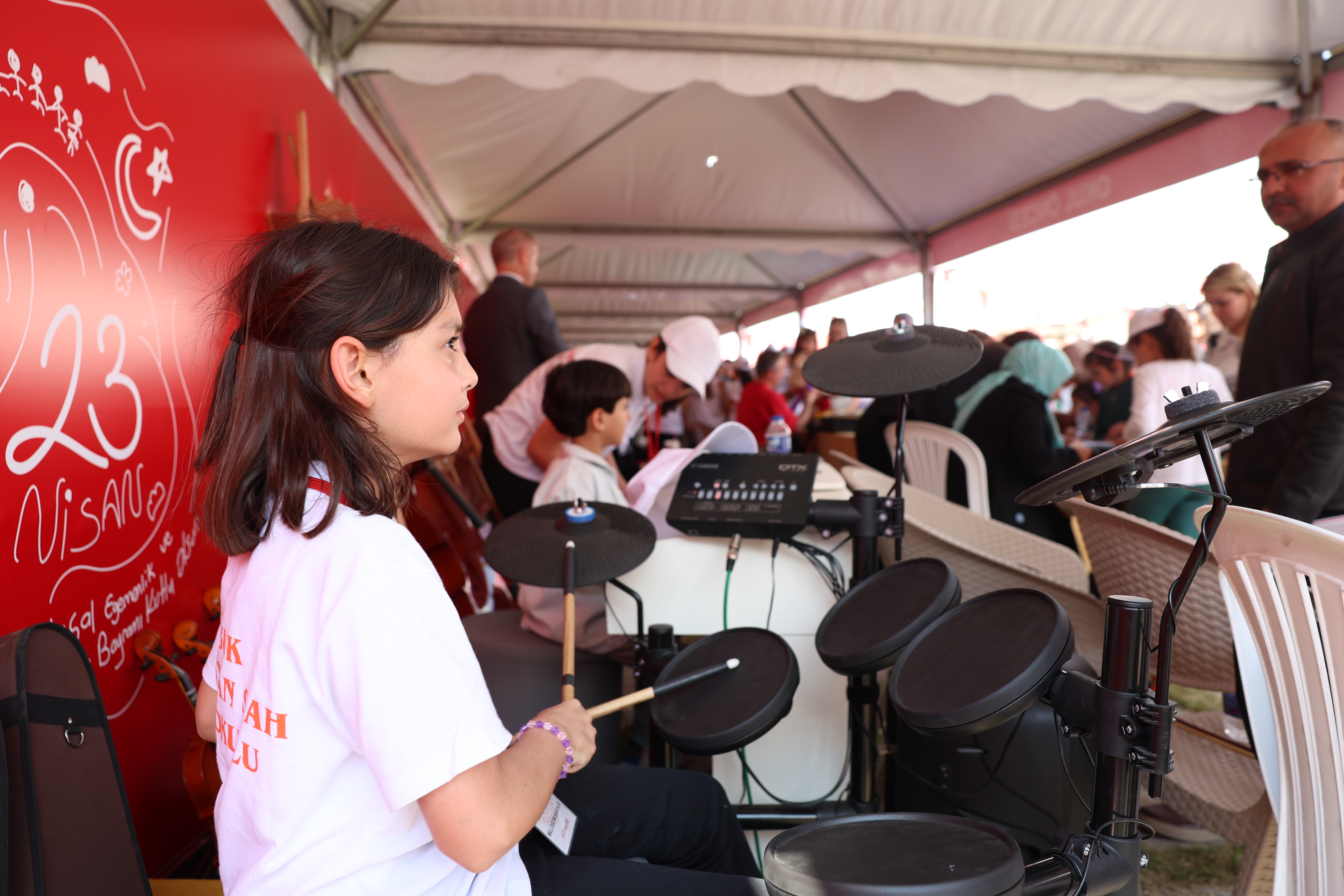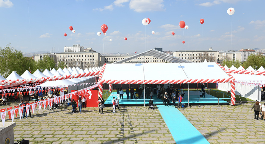 Sabah saatlerinden itibaren çocuklar, TBMM bahçesinde kurulan alana gelerek, kendileri içini hazırlanan etkinliklere katılıyor.