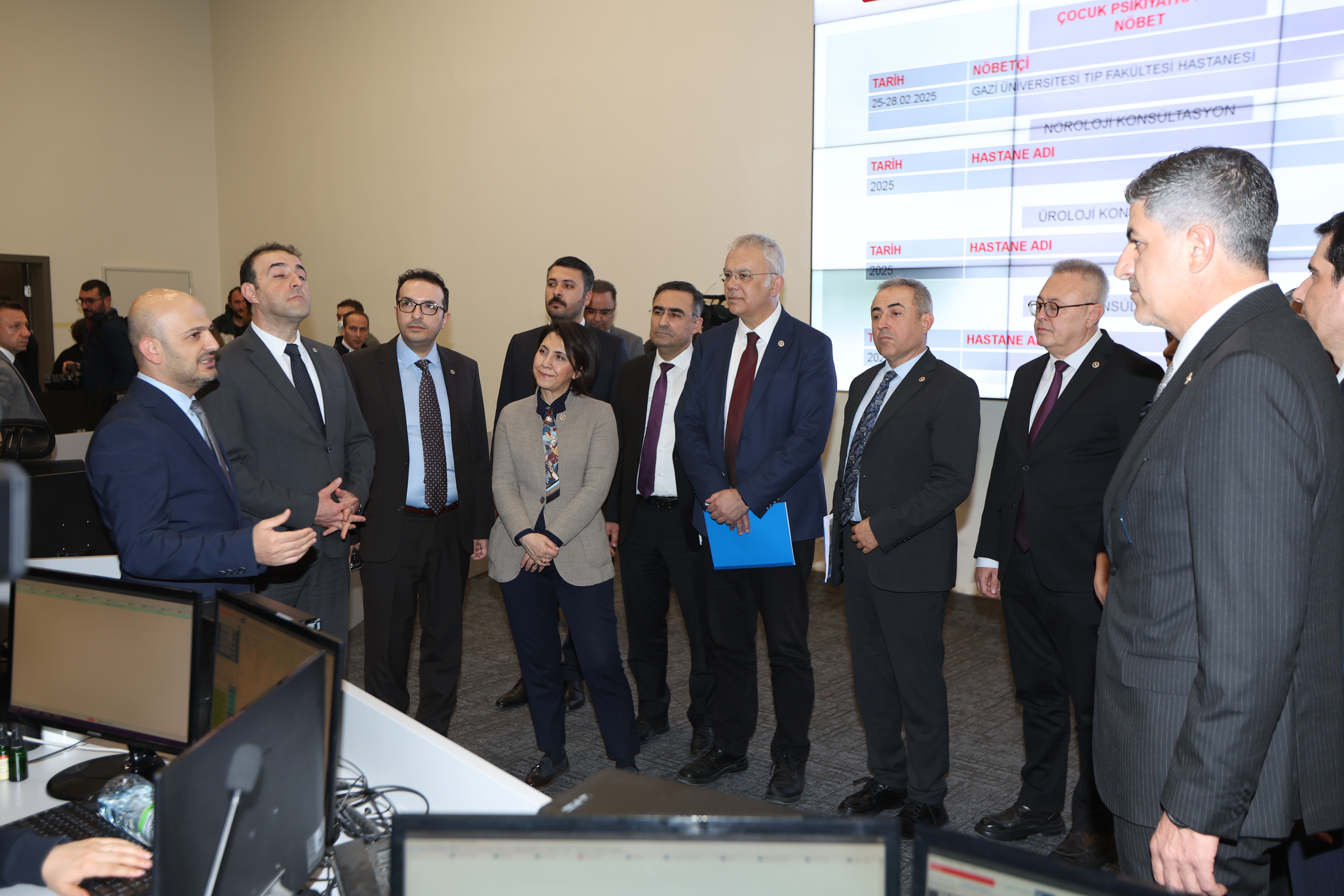 Valiliğin ardından Ankara İl Sağlık Müdürlüğüne ziyarette bulunan Komisyon üyelerine, İl Sağlık Müdürü Ali Niyazi Kurtcebe, il genelindeki sağlık hizmetleri, 112 hasta nakil hizmetleri ve yoğun bakım hizmetleri hakkında kapsamlı bir sunum yaptı.