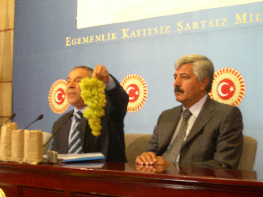 DSP Denizli Milletvekili Hasan Erçelebi, üzüm üreticilerinin sorunlarına ilişkin TBMM'de basın toplantısı düzenledi.