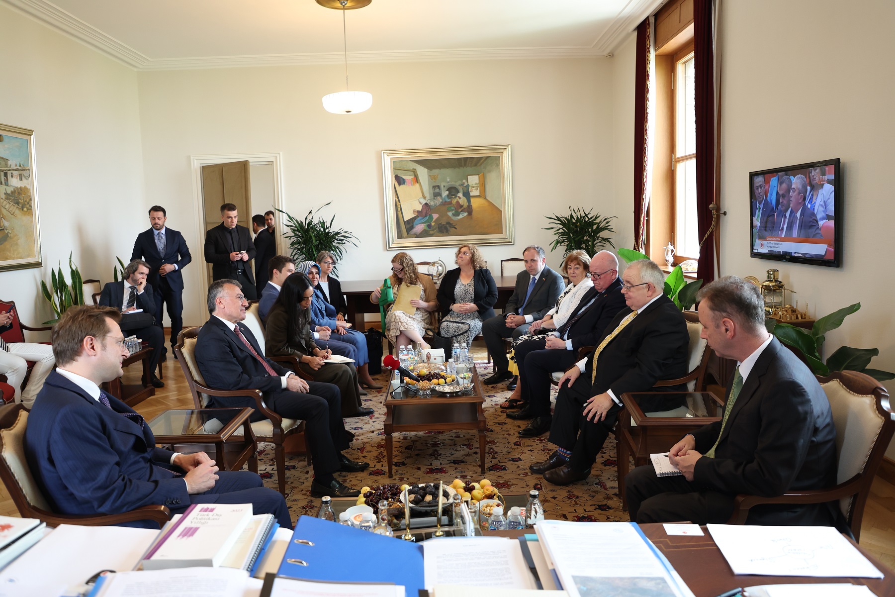 İrlanda Meclis Başkanı O Fearghail daha sonra DEM Parti Grup Başkanvekili Sezai Temelli ile bir araya geldi. Görüşme basına kapalı gerçekleşti.