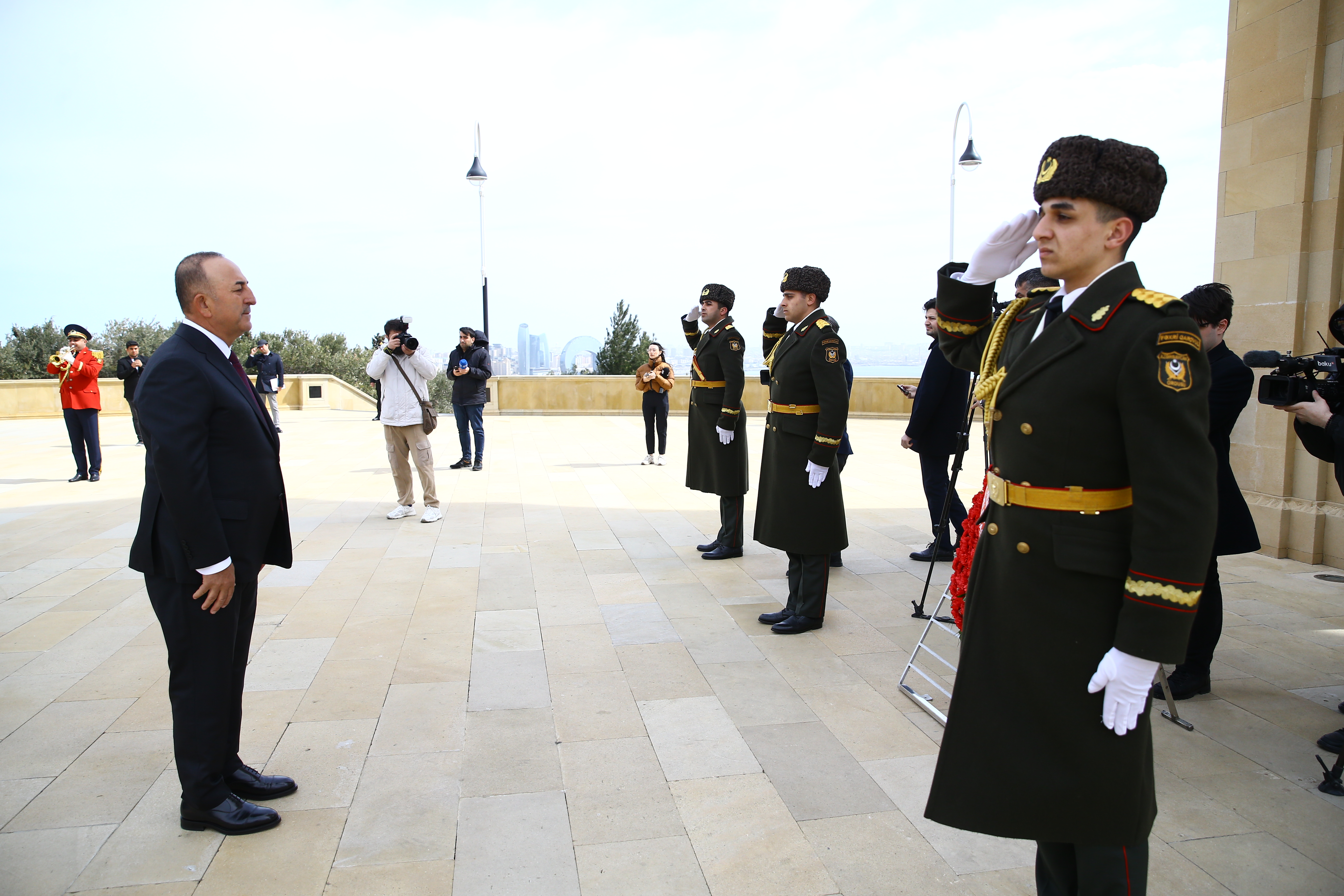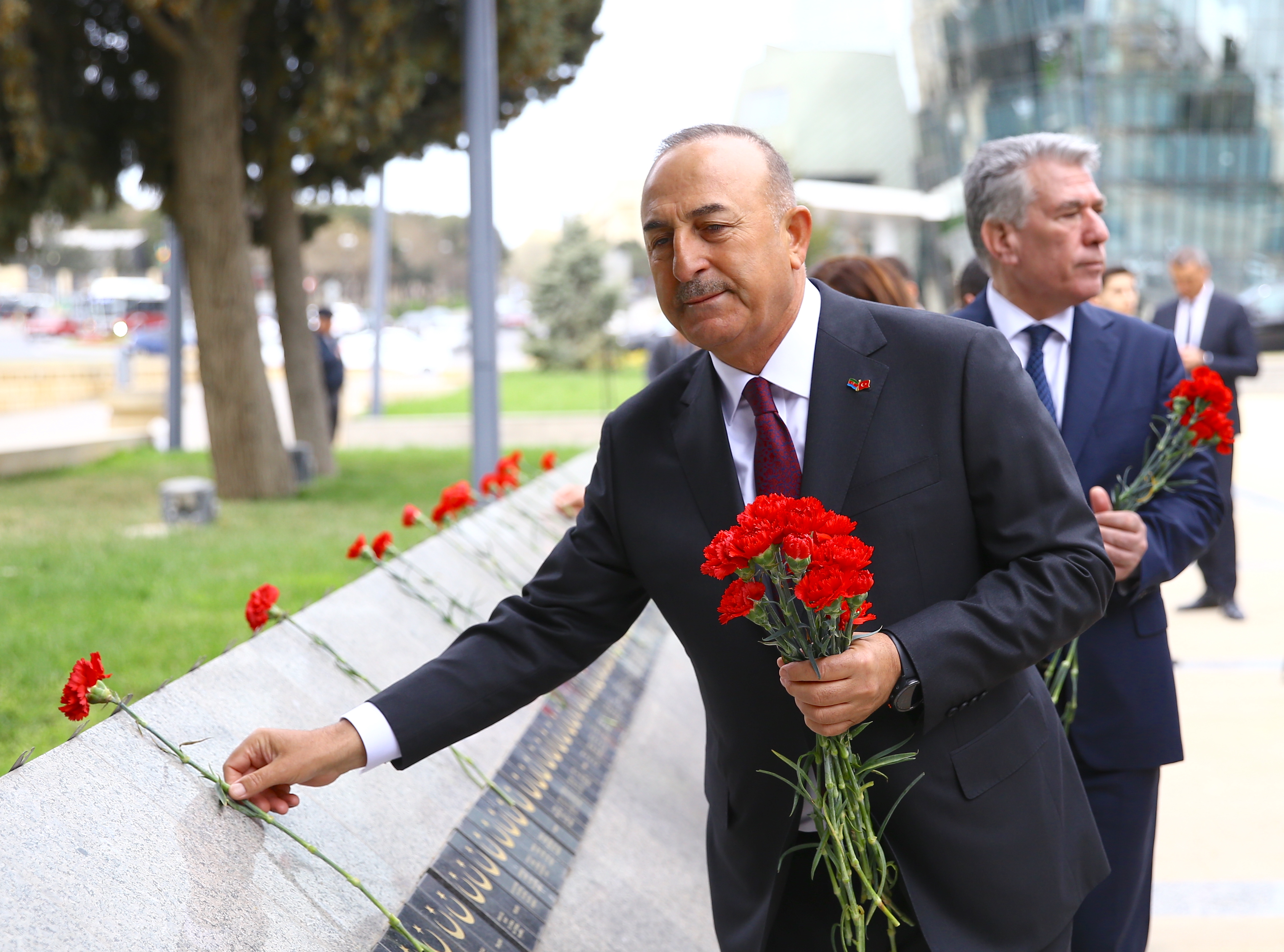 Haydar Aliyev'in anıt mezarına çelenk bırakan Çavuşoğlu, daha sonra 20 Ocak şehitlerinin defnedildiği Bakü Şehitler Hıyabanı'nda da Ebedi Ateş Anıtı'na çelenk sundu.