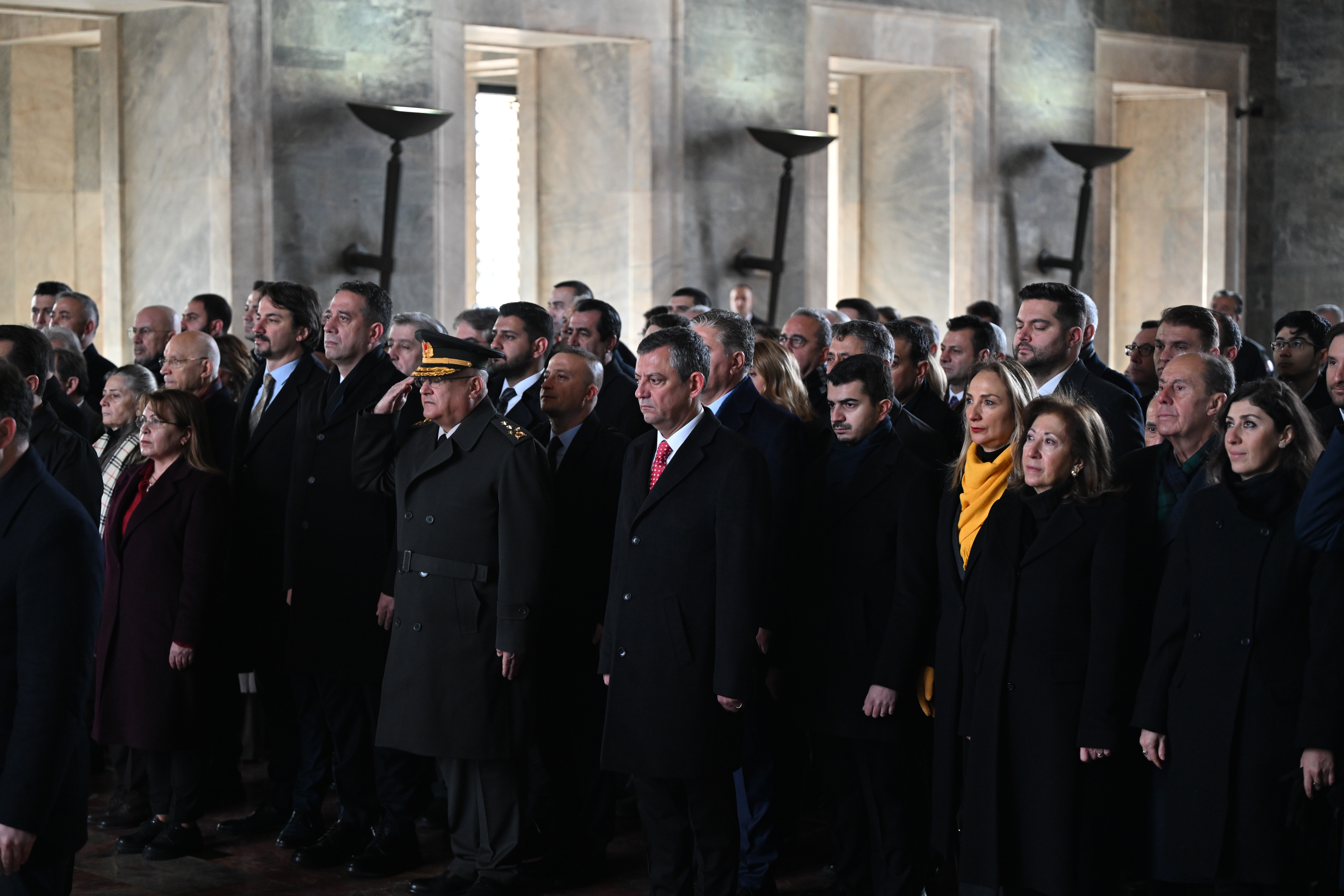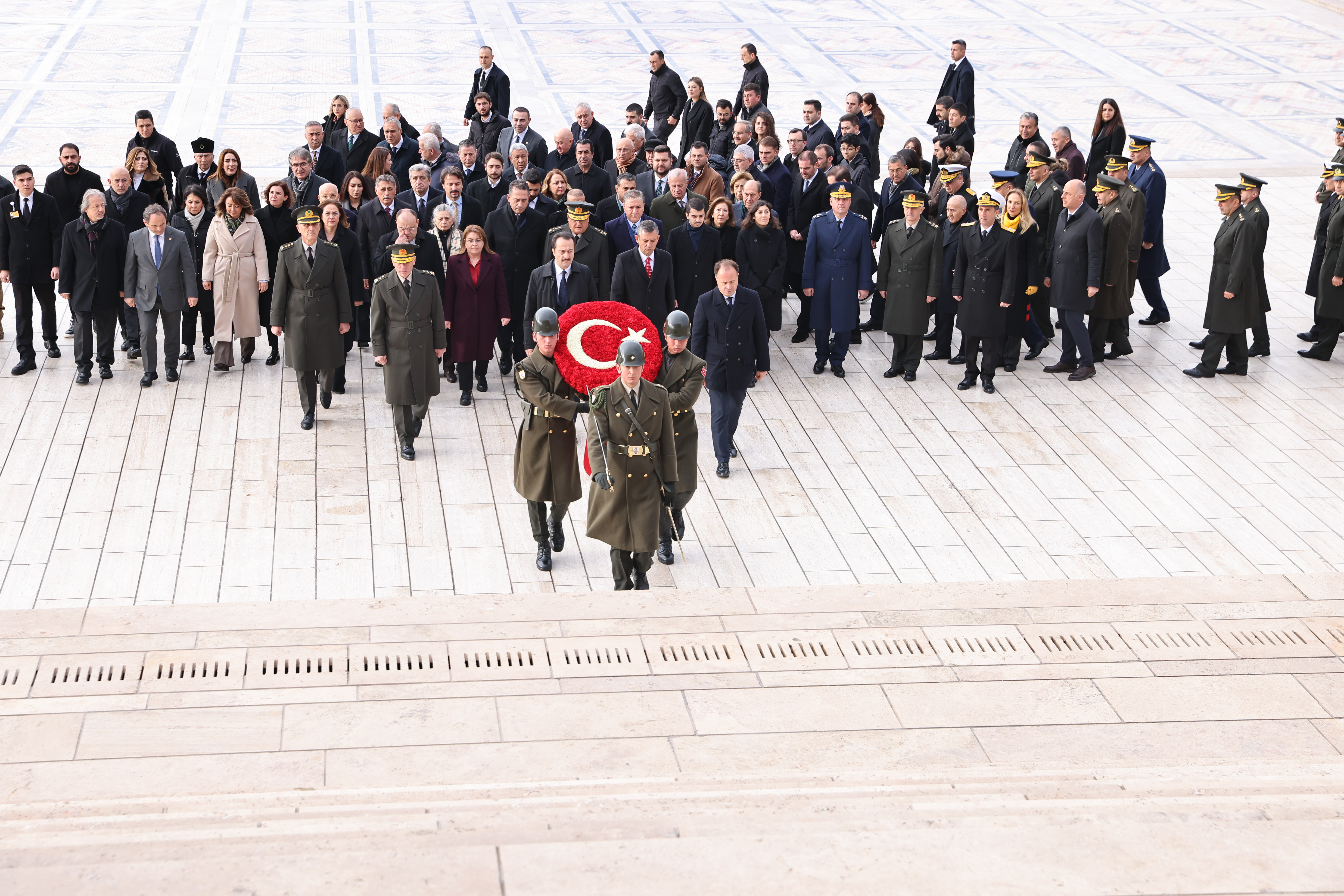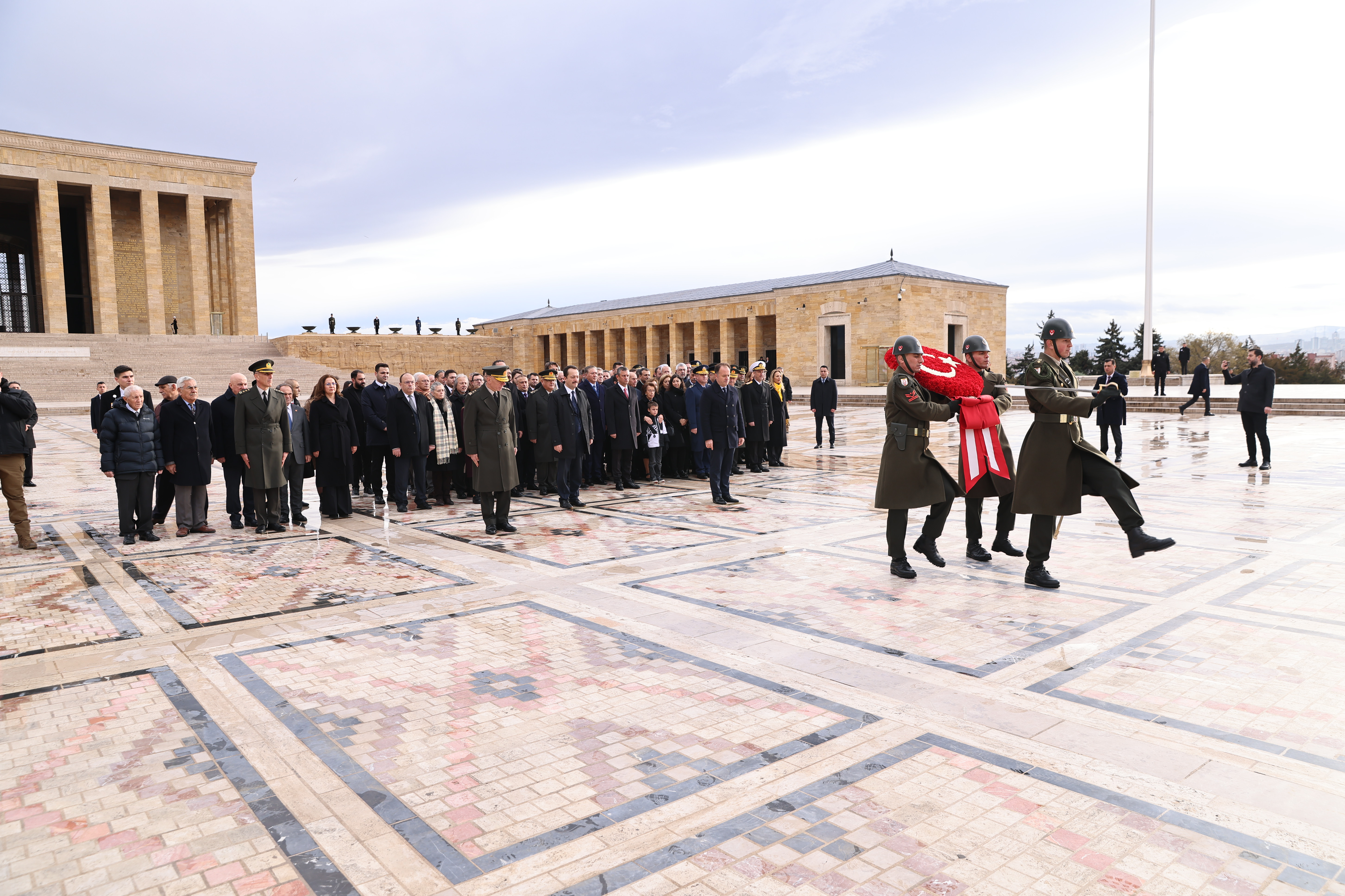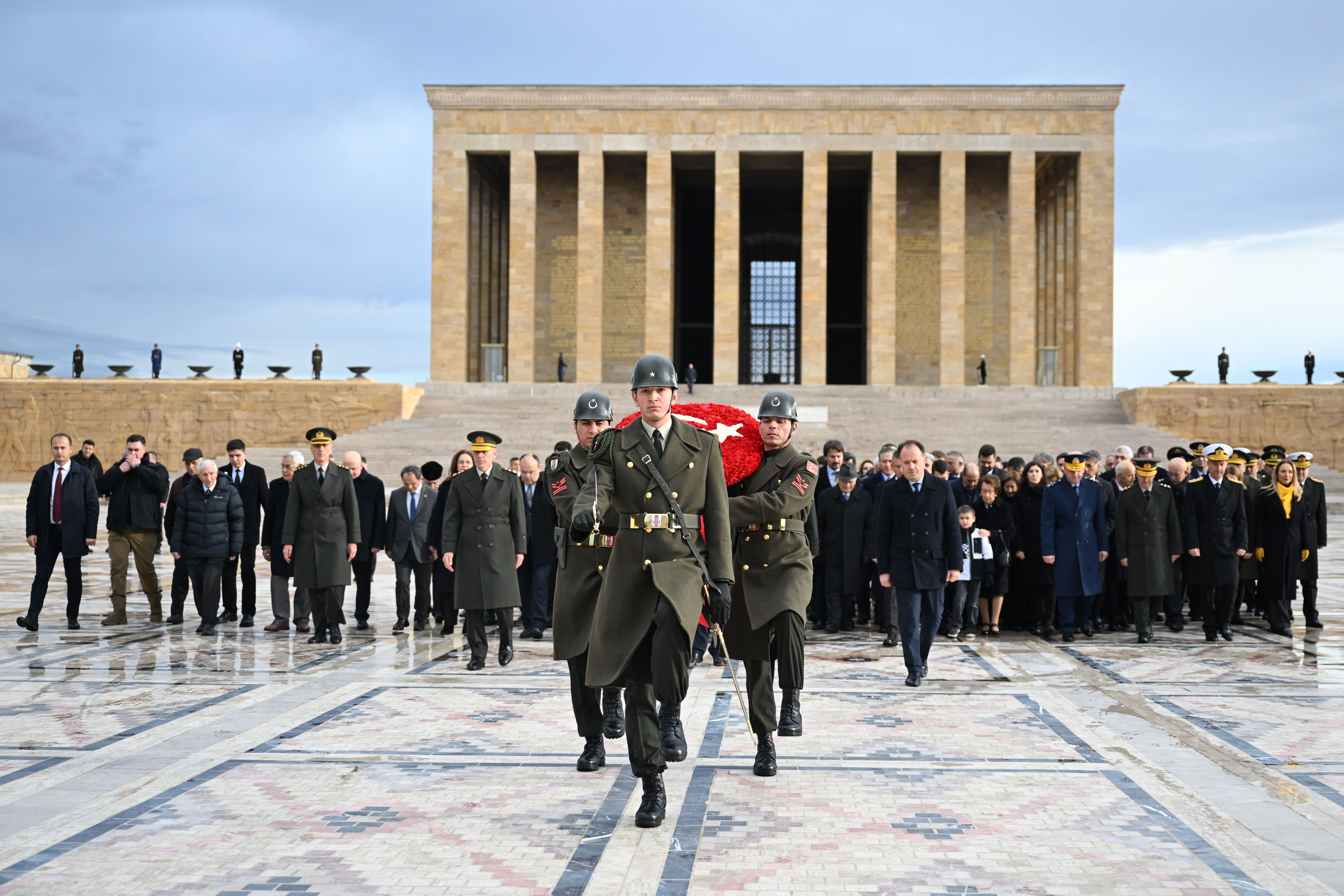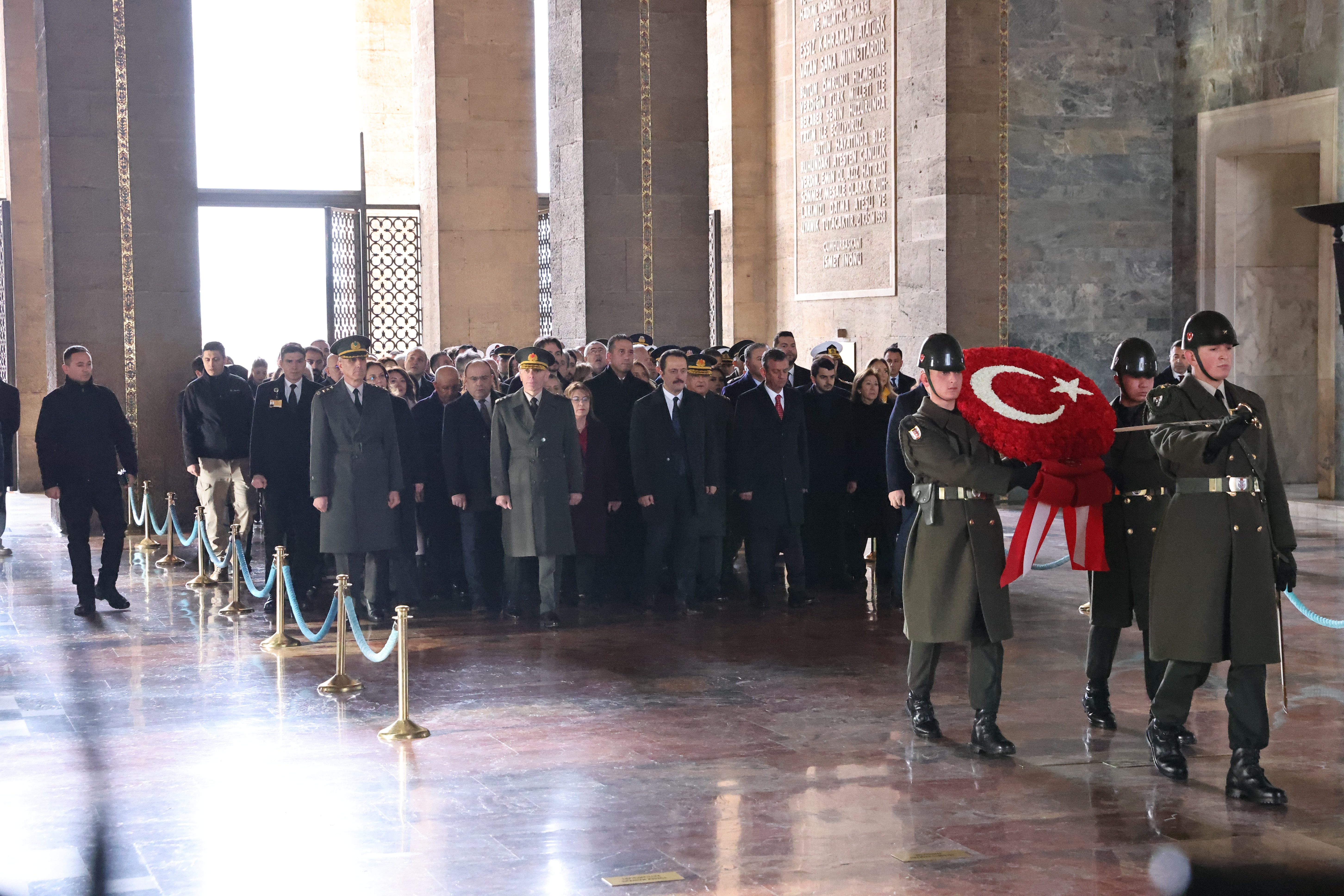 Aslanlı Yol'da yürüyen heyet, Personel ve Prensipler Genel Müdürü Şentürk tarafından Gazi Mustafa Kemal Atatürk'ün kabrine çelenk konulmasının ardından, saygı duruşunda bulundu.