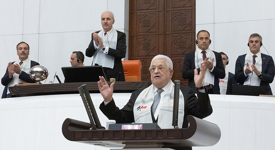 Filistin Devlet Başkanı Abbas, TBMM'ye hitaben yaptığı konuşmada, Cumhurbaşkanı Recep Tayyip Erdoğan'ın liderliğindeki Türkiye'nin Filistin halkının meşru haklarını savunan duruşunu takdir ettiğini belirtti.