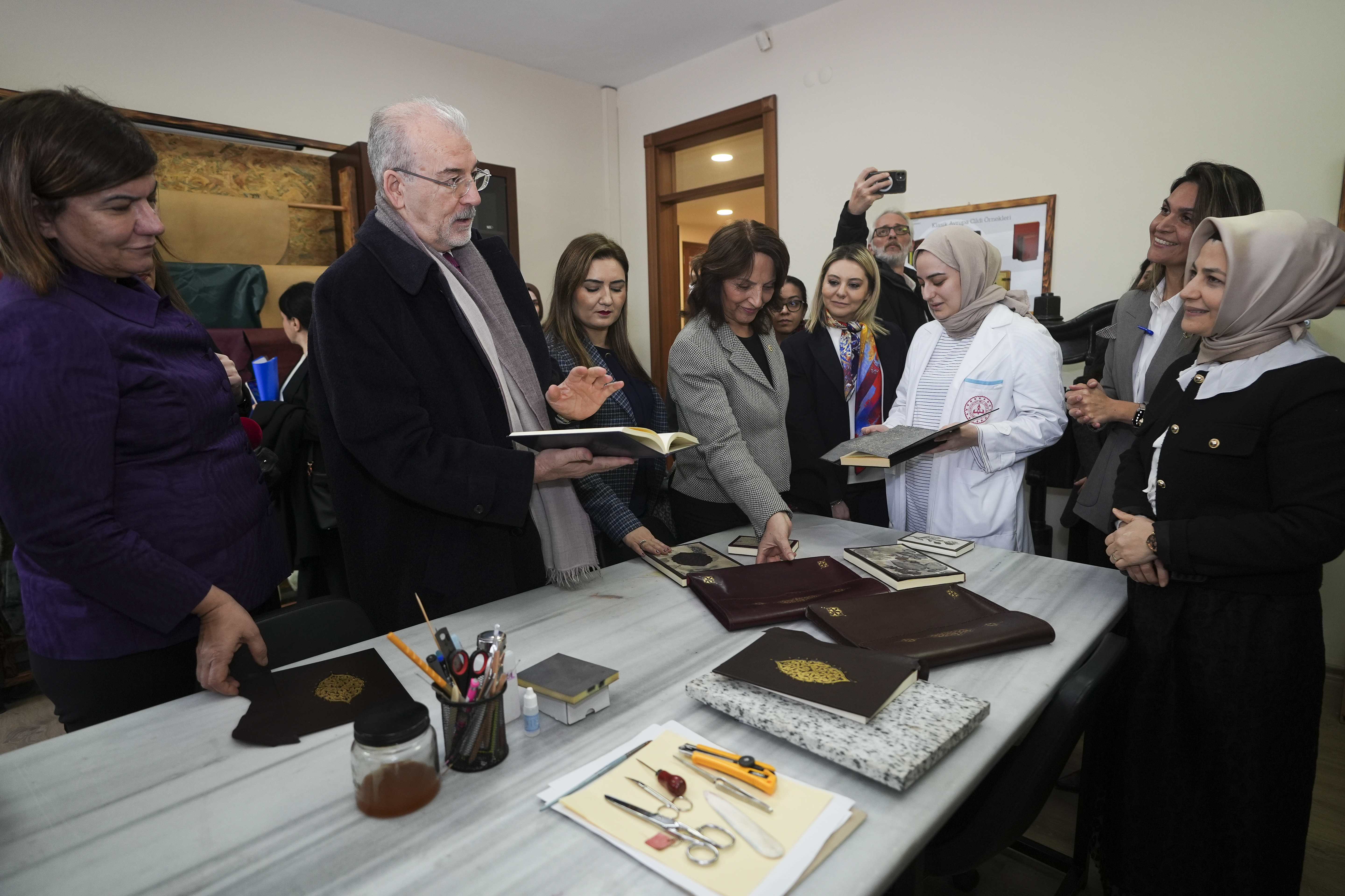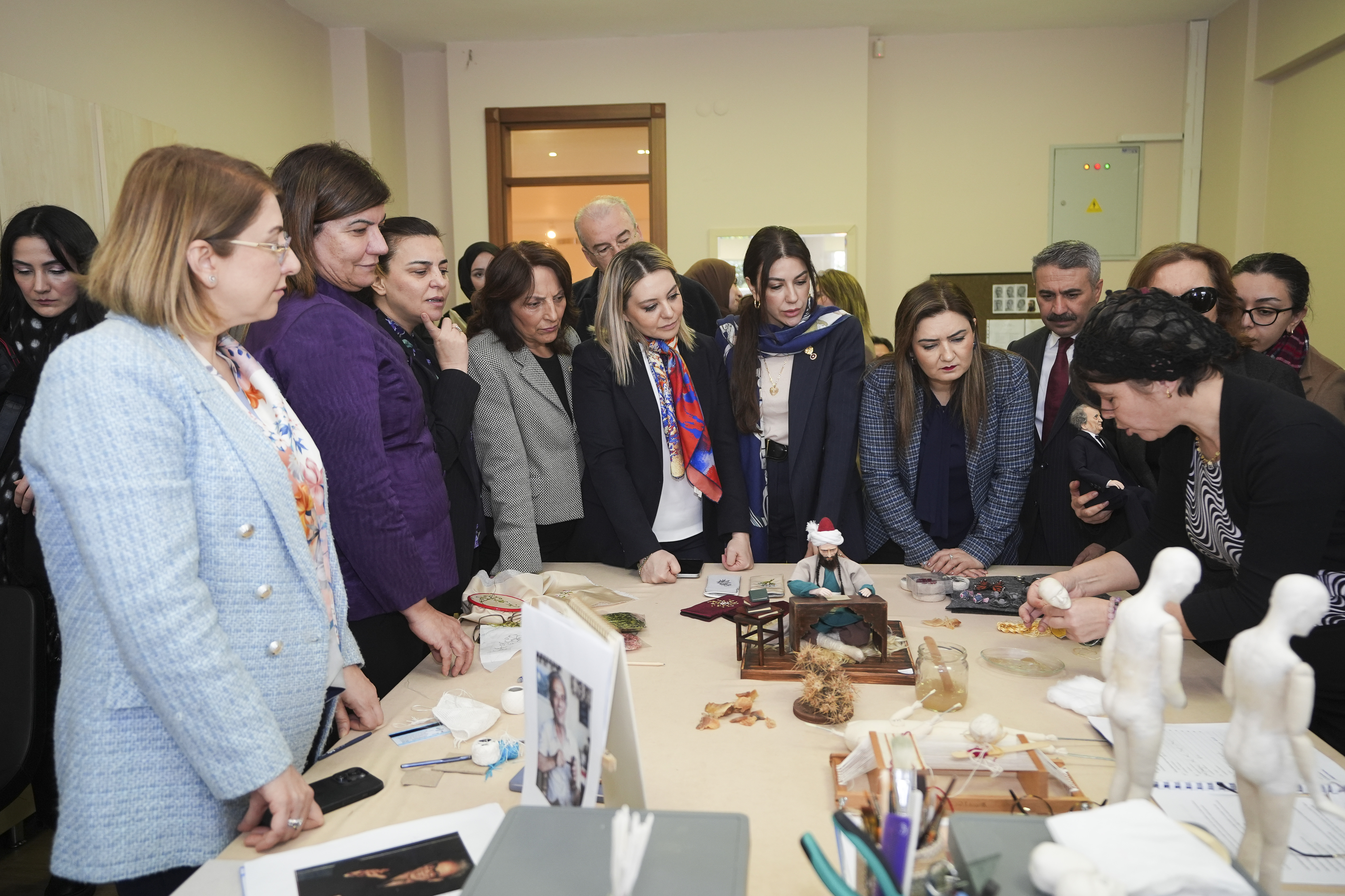 Enstitünün faaliyetlerine ilişkin yapılan sunumun ardından komisyon üyeleri, kadınların atölyelerde ürettikleri tasarımları inceleyerek, bilgi aldı.