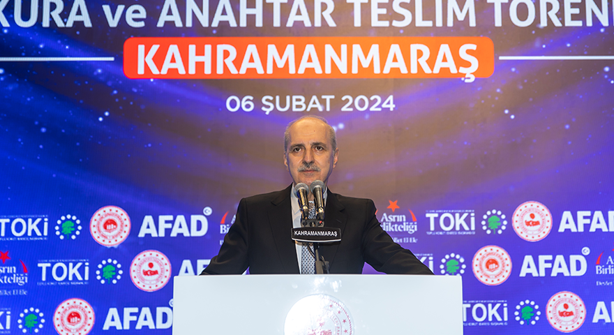 TBMM Başkanı Kurtulmuş, Cumhurbaşkanı Recep Tayyip Erdoğan ve MHP Genel Başkanı Devlet Bahçeli'nin de katılımıyla Kahramanmaraş Sütçü İmam Üniversitesi'nde düzenlenen "Deprem Konutları Kura ve Anahtar Teslim Töreni"ndeki konuşmasında, 6 Şubat'ta yaşanan deprem felaketinde hayatını kaybedenlere rahmet dileyerek, ruhlarına Fatiha okudu.