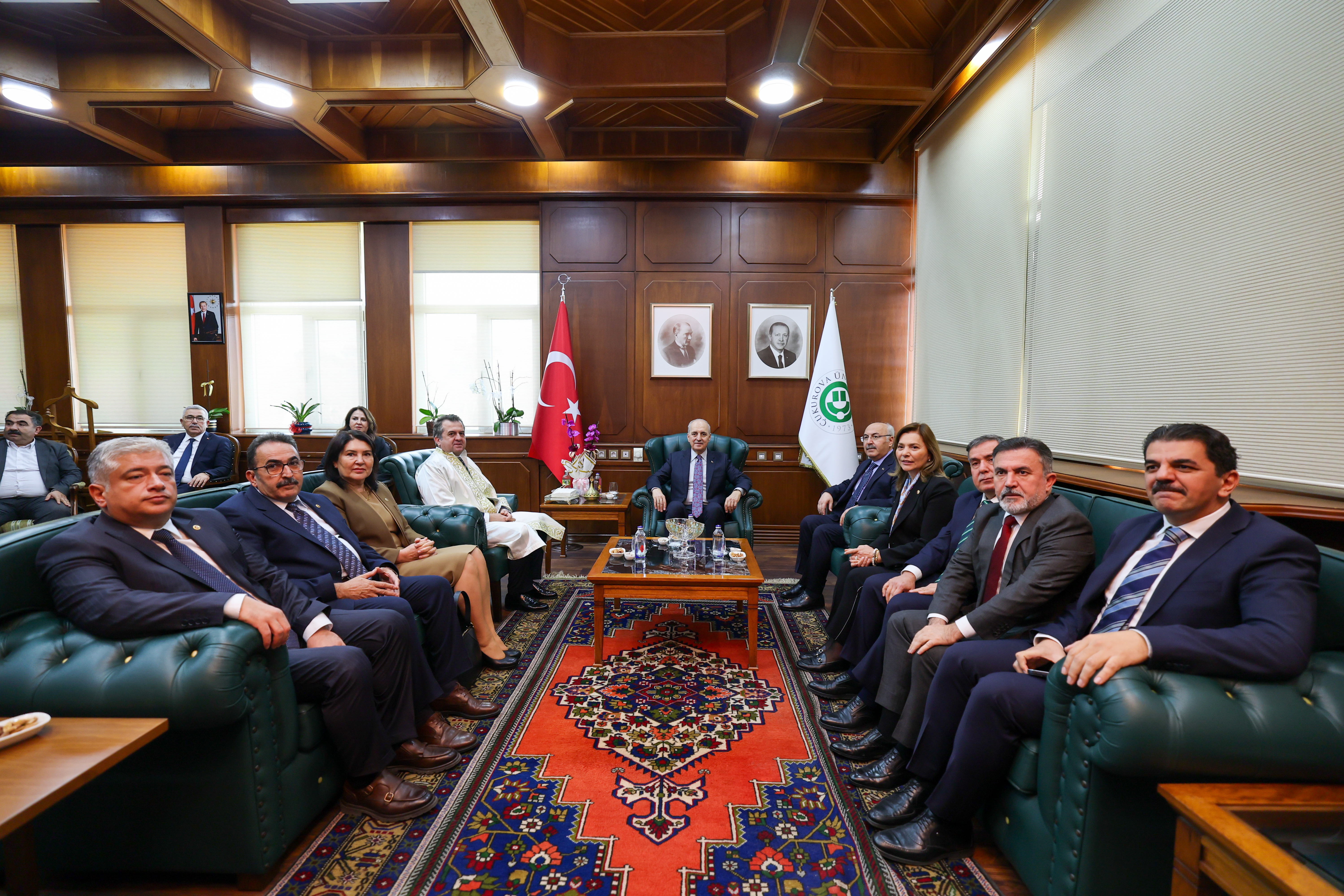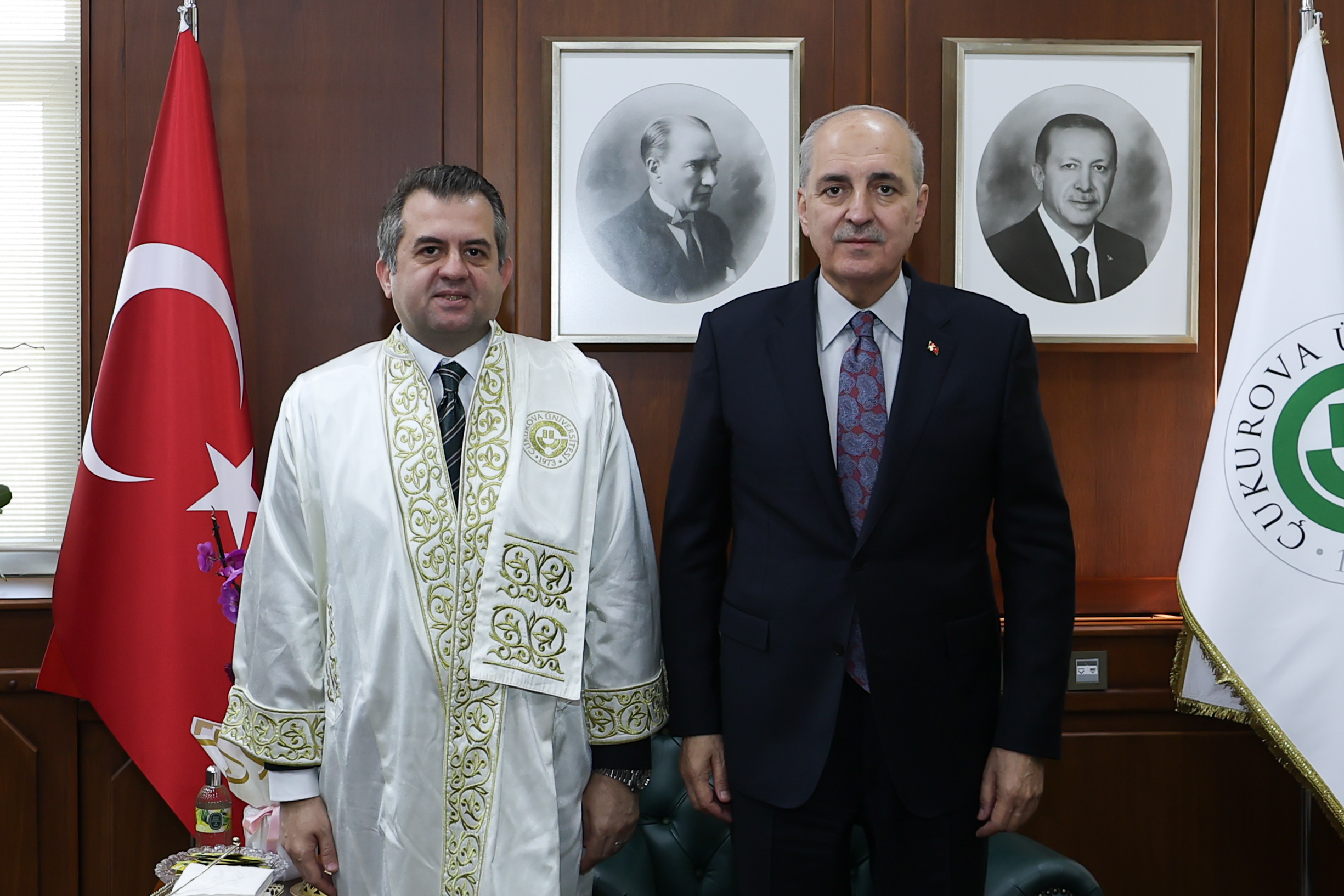 TBMM Başkanı Kurtulmuş, törenin ardından Çukurova Üniversitesi Rektörü Prof. Dr. Hamit Emrah Beriş’i ziyaret ederek, çalışmaları hakkında bilgi aldı.