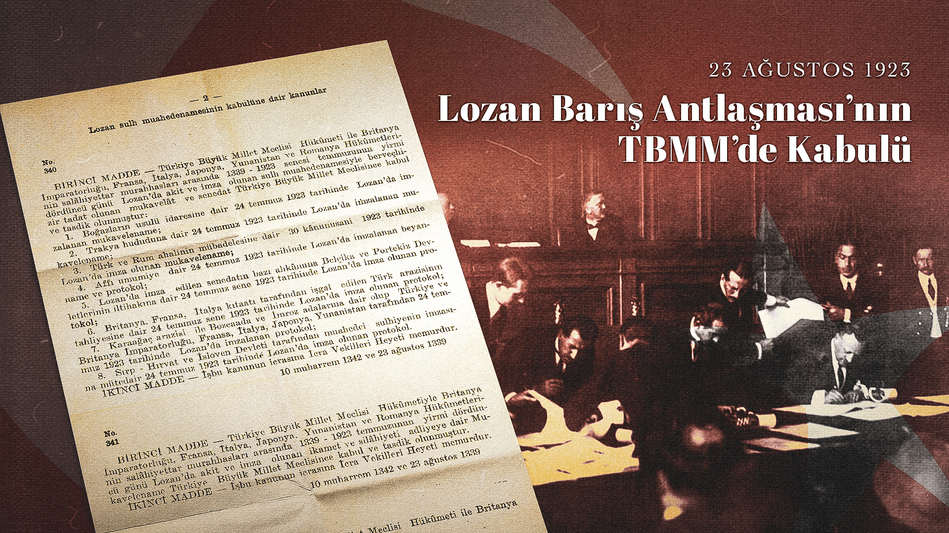 Ülkemizi işgal ve paylaşım antlaşması olan Sevr'i yırtıp tarihin çöplüğüne atan Meclisimiz, Lozan Barış Antlaşması'nı kabul ederek, aziz milletimizin tam bağımsızlığını ve Millî Mücadele'nin zaferle taçlandığını tüm dünyaya ilan etmiştir.