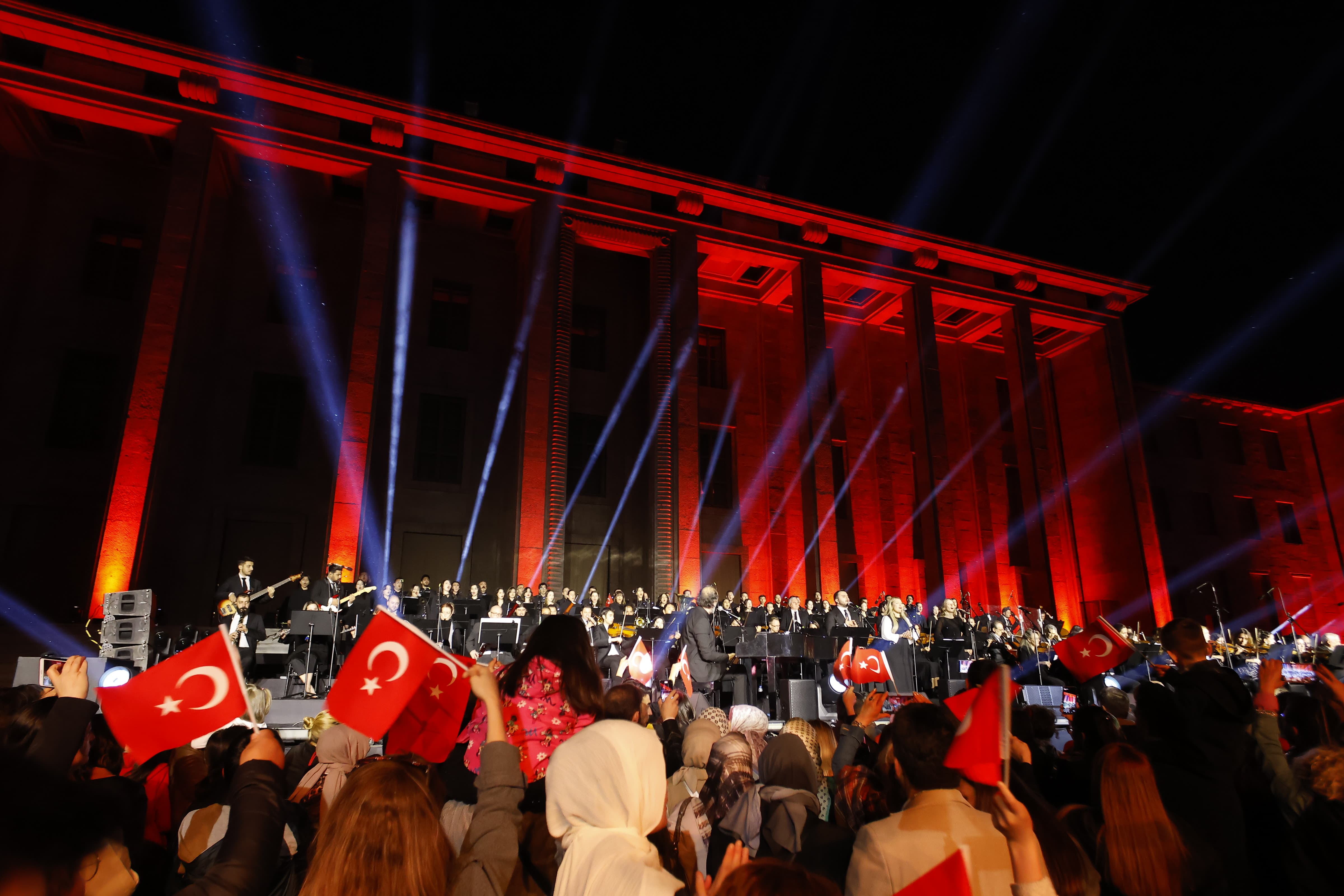 TBMM’de ilk defa gerçekleştirilen konserde, 150 kişiden oluşan Türkiye Yüzyılı Orkestra ve Korosu çeşitli eserler seslendirdi.