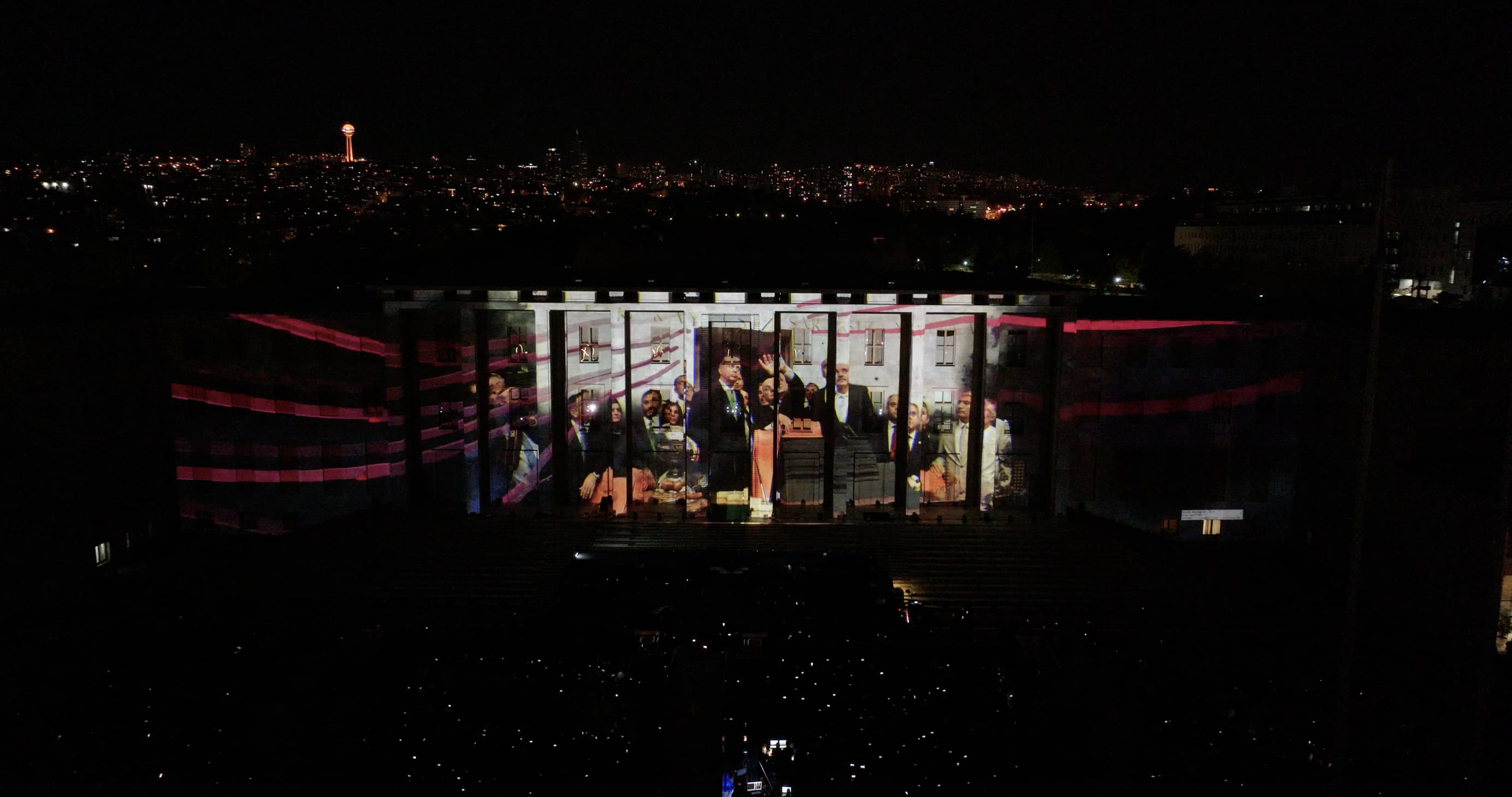Konserin ardından geçmişten günümüze Türk tarihini anlatan ışık ve mapping gösterisi yapıldı. Gösteriyle, 1071'den 2024'e kadar geçen zaman, Meclis ana binasının yüzeyine yansıtıldı.