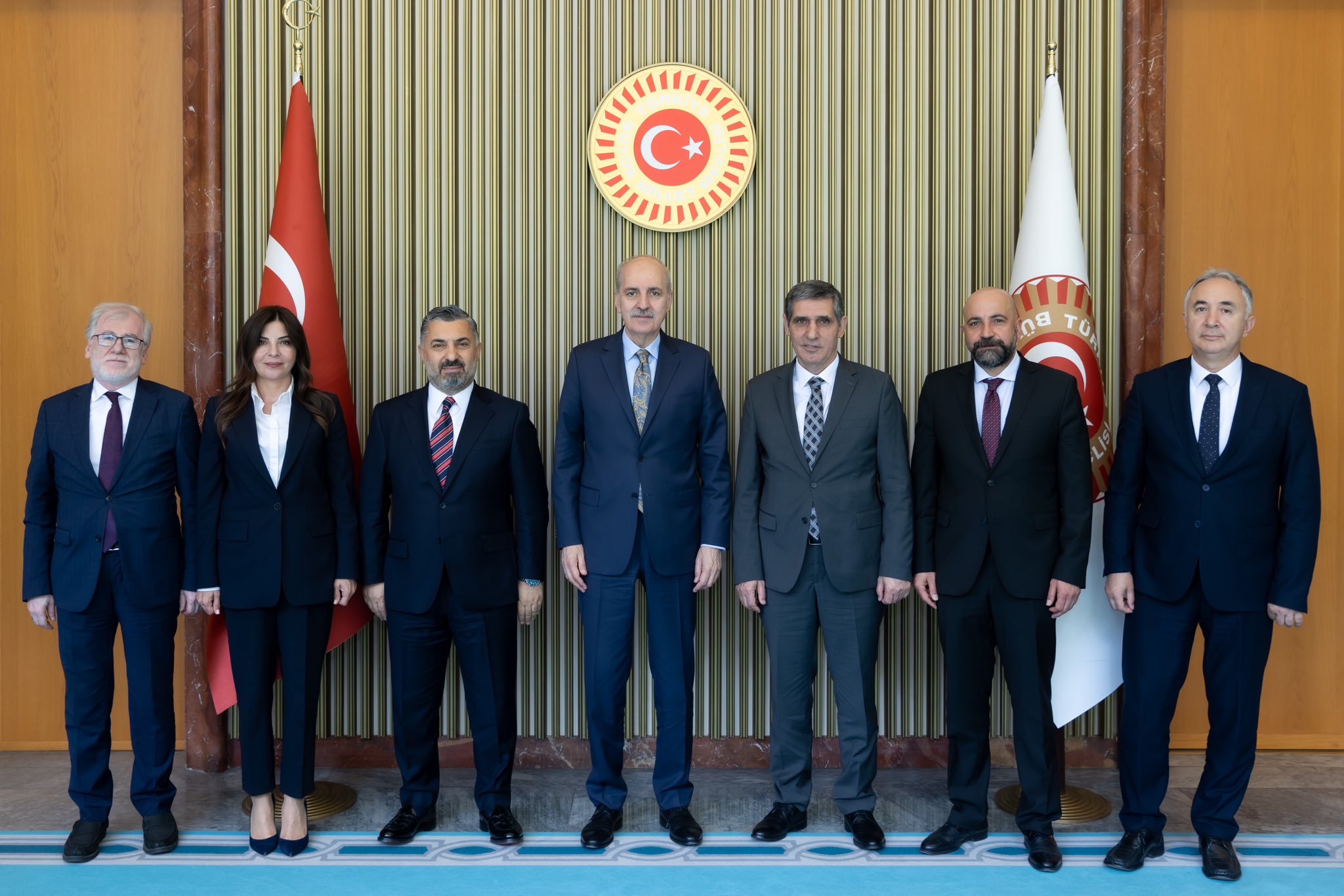 TBMM Başkanı Numan Kurtulmuş, Radyo ve Televizyon Üst Kurulu (RTÜK) Başkanı Ebubekir Şahin ve beraberindeki kurul üyelerini makamında kabul etti.
