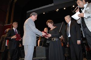 orkestra şefi Naci Özgüç'e teşekkür plaketi verdi.