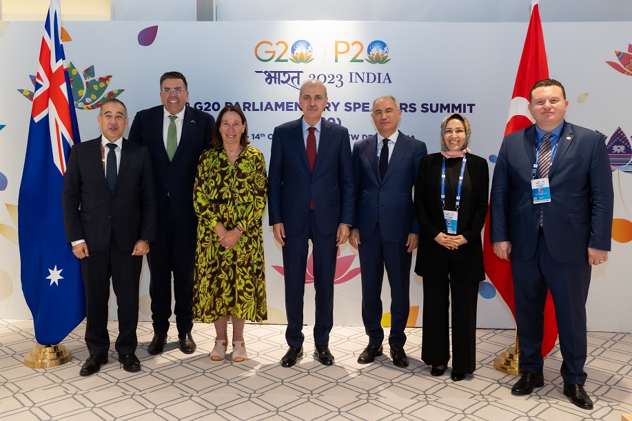 TBMM Başkanı Kurtulmuş, Yeni Delhi’deki ilk görüşmesini, Avustralya Senato Başkanı Sue Lines ve Avustralya Temsilciler Meclisi Başkanı Milton Dick ile yaptı.