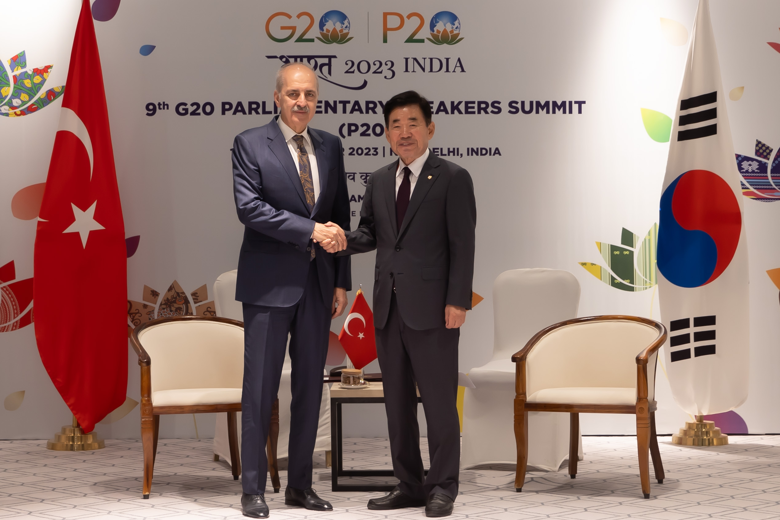 TBMM Başkanı Kurtulmuş, Hindistan’ın başkenti Yeni Delhi’de düzenlenen G20 Parlamento Başkanları Zirvesi (P20) kapsamında üst düzey oturumlara katıldı, Parlamentolar Arası Birlik (PAB) Başkanı’nın da arasında olduğu Avustralya, Birleşik Arap Emirlikleri, Hindistan, Endonezya, Rusya, Güney Kore’nin meclis başkanlarıyla görüşmeler gerçekleştirdi.