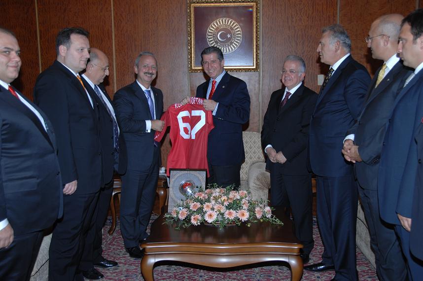 Federasyon Başkanı Ulusoy, 17 Ekim'de yapılacak olan Türkiye-Yunanistan milli maçına TBMM Başkanı Köksal Toptan'ı davet etti. Federasyon heyeti daha sonra TBMM Başkanı'na 67 numarayı taşıyan milli forma ve bir plaket hediye etti.