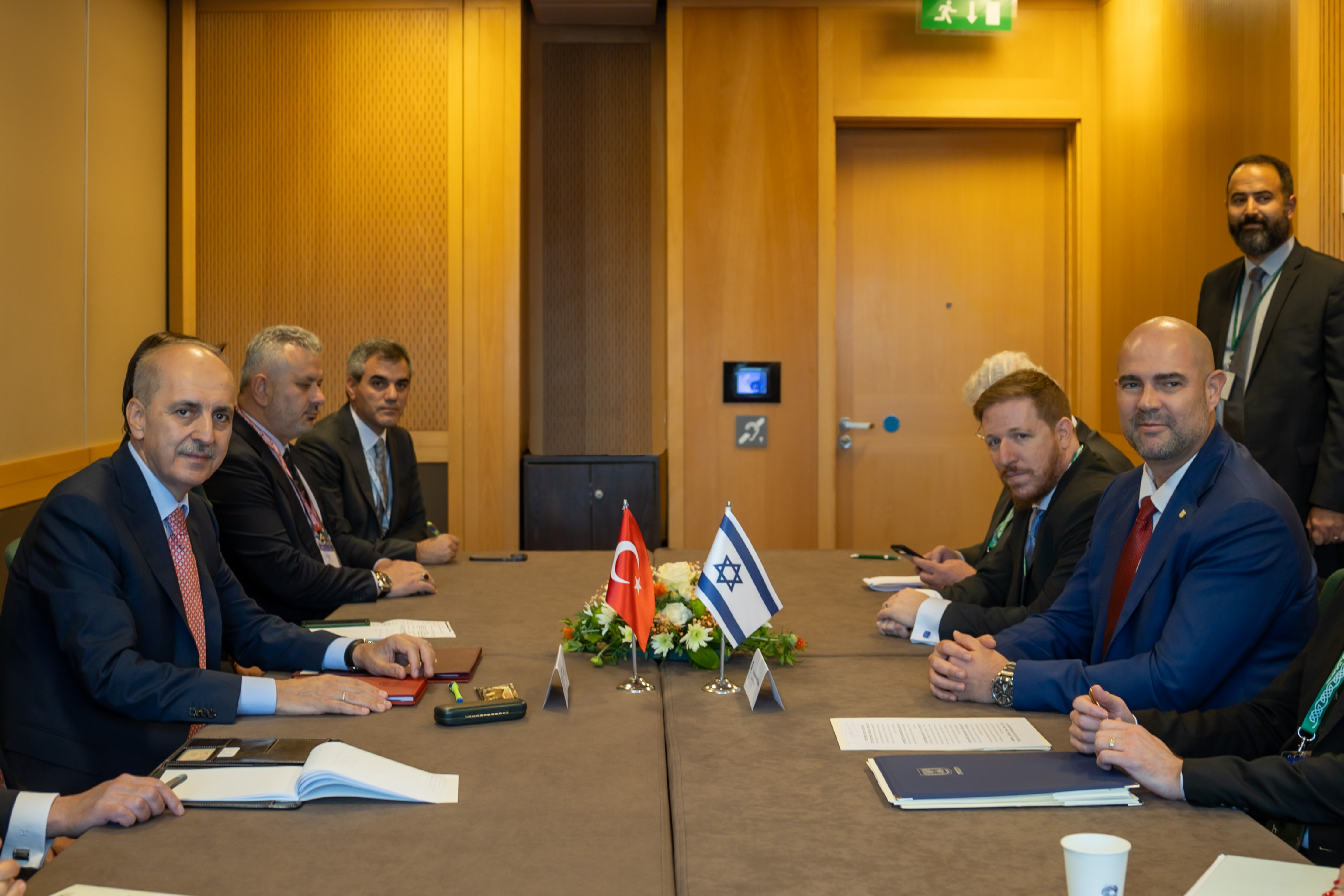 TBMM Başkanı Numan Kurtulmuş, Avrupa Parlamento Başkanları Konferansı'na katılmak üzere geldiği İrlanda'nın başkenti Dublin'de, İrlanda Senato Başkanı Jerry Buttimer ve İsrail Meclis Başkanı Amir Ohana ile ayrı ayrı bir araya geldi.