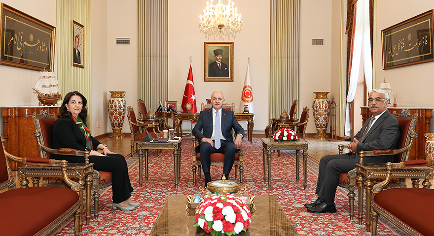 TBMM Başkanı Numan Kurtulmuş, TBMM Başkanvekili, DEM Parti Van Milletvekili Pervin Buldan ve DEM Parti Şanlıurfa Milletvekili Mithat Sancar'ı kabul etti.
